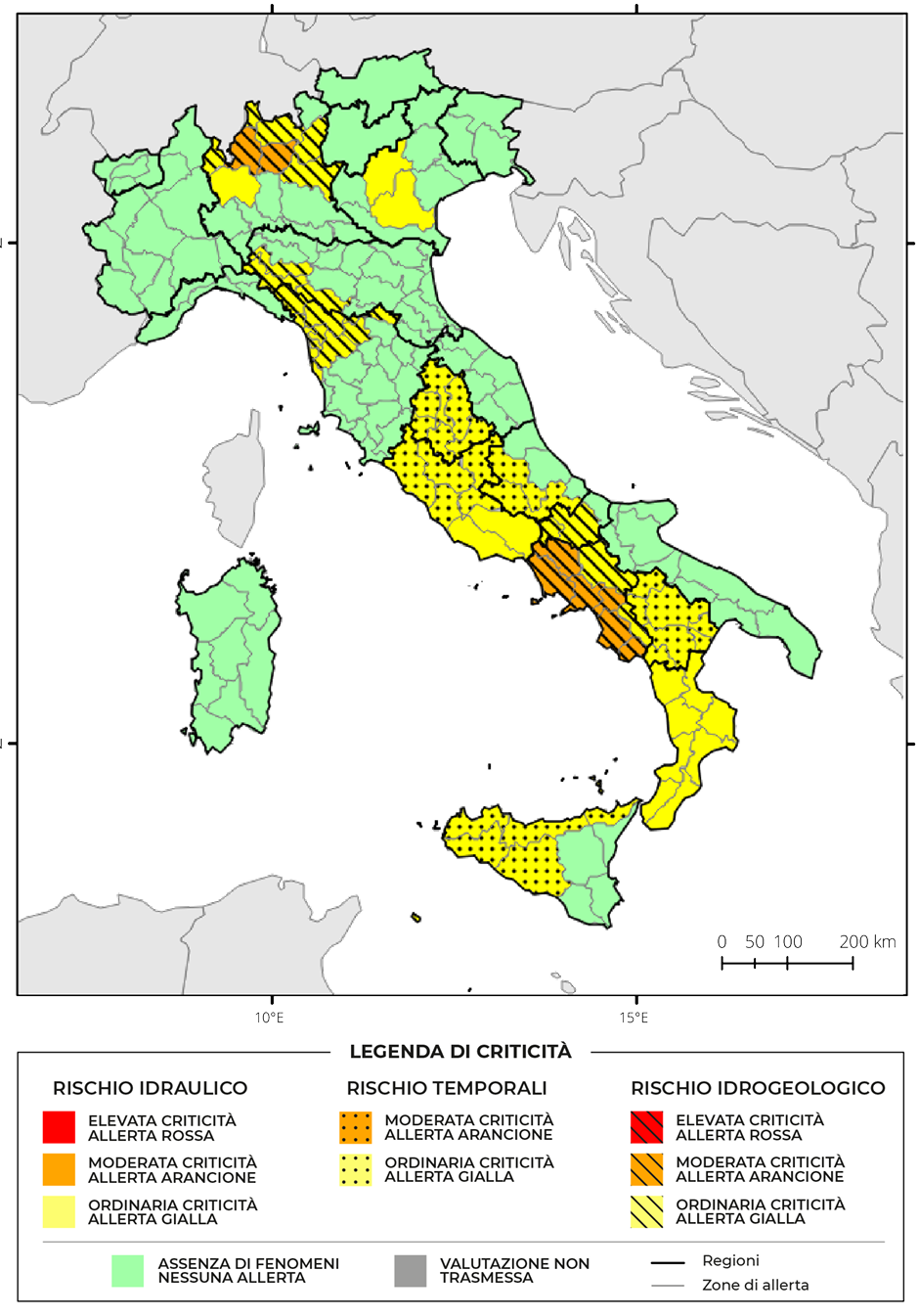 ORDINARIA CRITICITA’ PER RISCHIO TEMPORALI / ALLERTA GIALLA: