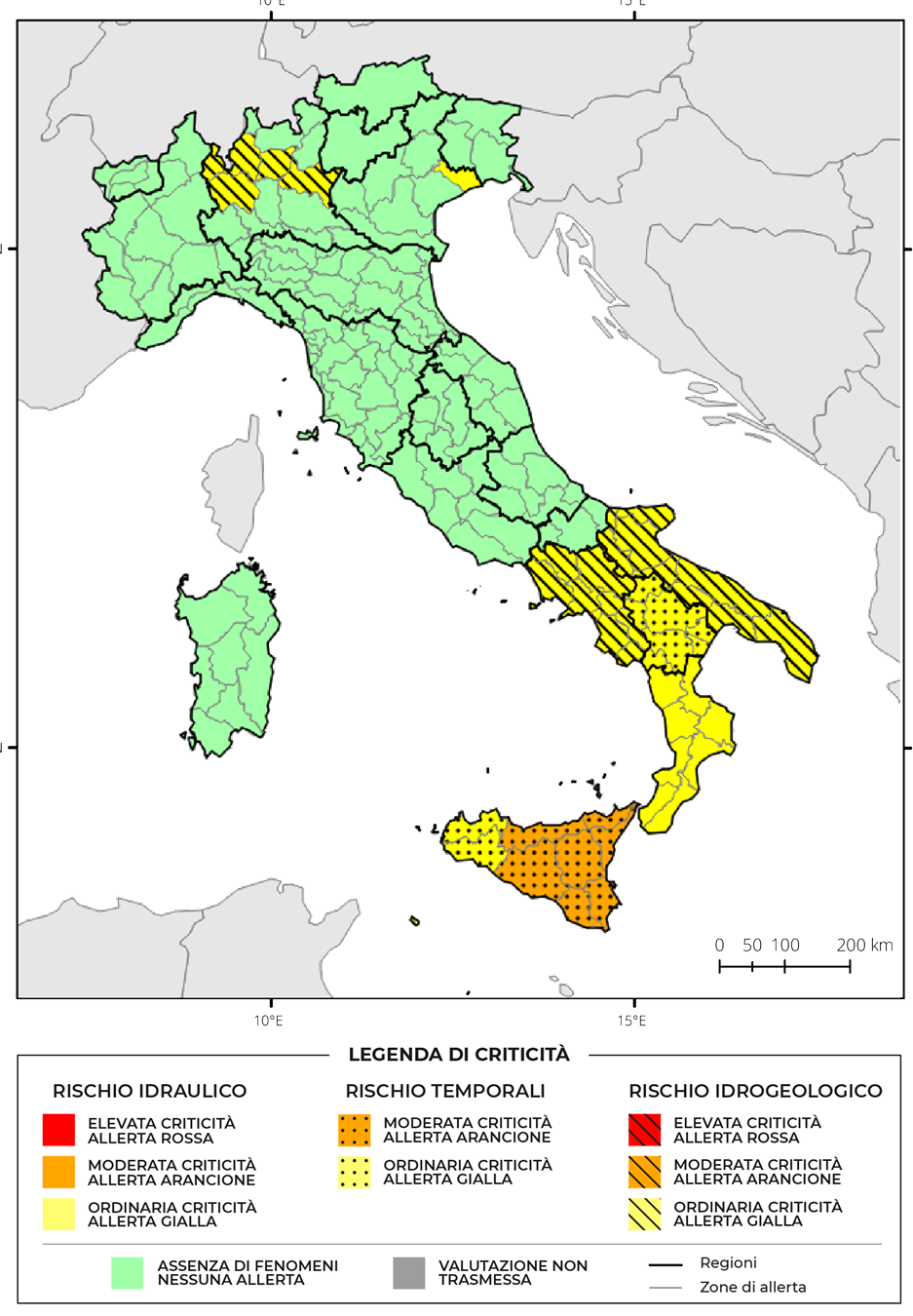 ORDINARIA CRITICITA’ PER RISCHIO TEMPORALI / ALLERTA GIALLA: