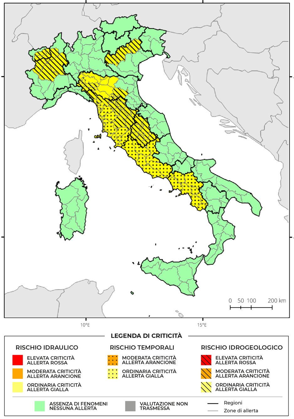 ORDINARIA CRITICITA’ PER RISCHIO TEMPORALI / ALLERTA GIALLA: