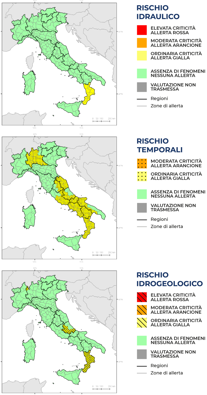 ORDINARIA CRITICITA’ PER RISCHIO TEMPORALI / ALLERTA GIALLA:
