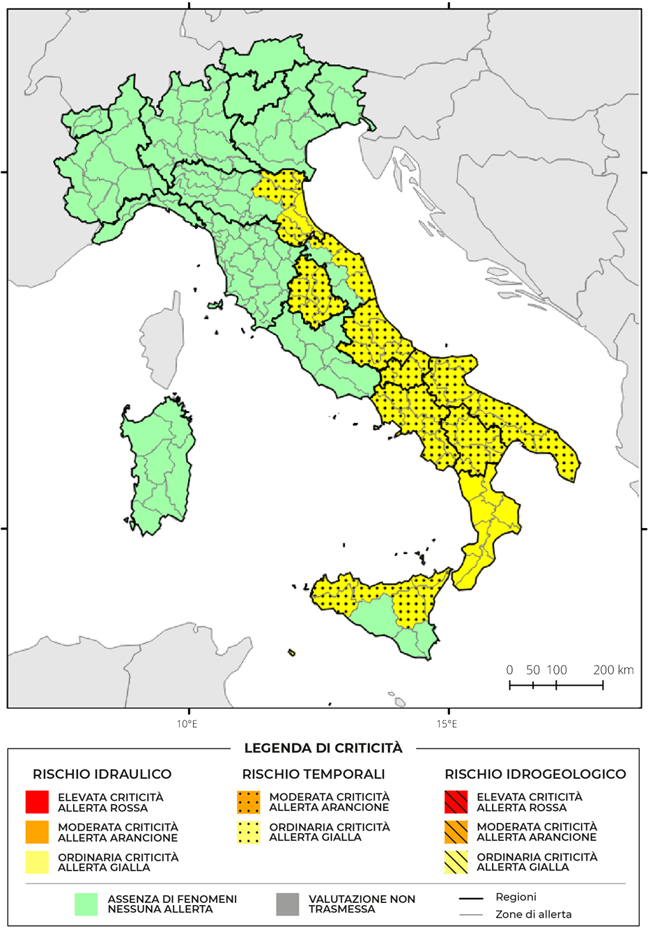 ORDINARIA CRITICITA’ PER RISCHIO TEMPORALI / ALLERTA GIALLA: