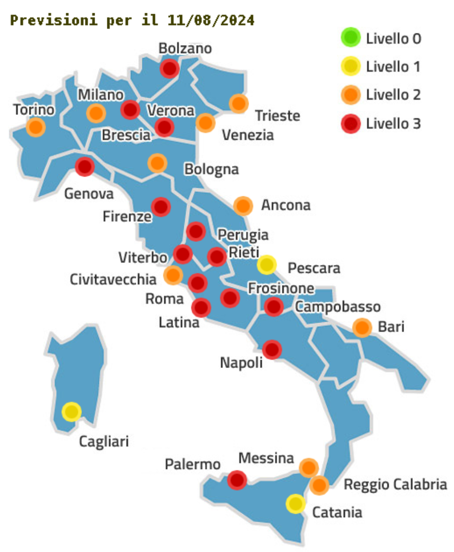 BOLLINO ARANCIONE: ANCONA, BARI, BOLOGNA, CIVITAVECCHIA, MESSINA, MILANO, REGGIO CALABRIA, TORINO, TRIESTE, VENEZIA
