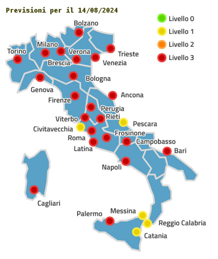 IL BOLLETTINO DEL MINISTERO DELLA SALUTE PER LA GIORNATA DI MERCOLEDI’ 14 AGOSTO 2024: