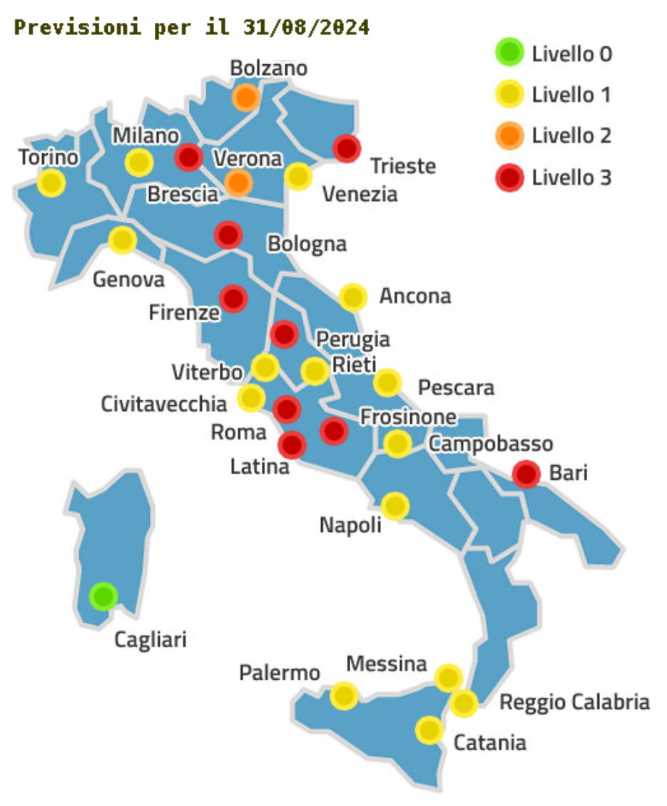 BOLLINO ROSSO: BARI, BOLOGNA, BRESCIA, FIRENZE, FROSINONE, LATINA, PERUGIA, ROMA, TRIESTE