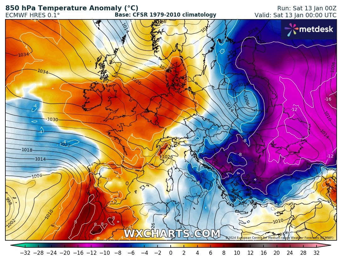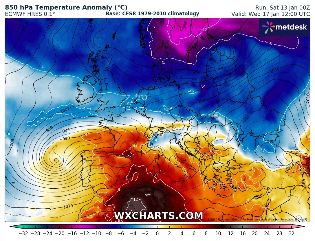 Volgendo lo sguardo a Mercoledì 17 Gennaio l’Anticiclone Africano avrà guadagnato tutto il Mediterraneo dal Portogallo alla Grecia, al Centro Sud Italia ed Isole sembreranno giornate quasi primaverili invece che giornate invernali: