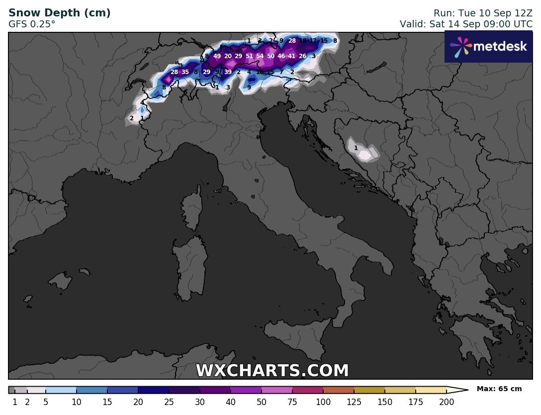 Nella giornata di Giovedì 12 Settembre quando sull’Italia approderà un ennesimo Ciclone con annesso maltempo su tutto il Paese, inizieranno anche le prime nevicate della stagione alle quote medio alte.