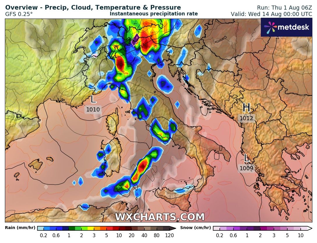 Le ultime emissioni del modello Americano GFS continuano a confermare una corposa discesa di aria più fredda nella giornata del 15 Agosto appunto Ferragosto con annessa perturbazione, molto profonda per il periodo.