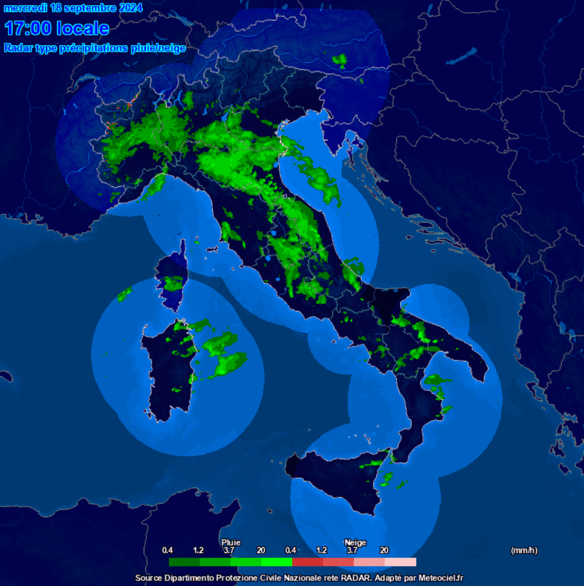 Infine fenomeni sparsi sono segnalati sulla Campania, Sardegna, Puglia e Basilicata.