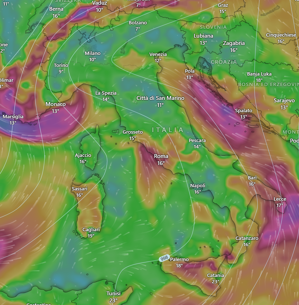 I venti saranno sostenuti su tutti i settori, mentre sull’Emilia Romagna, il Lazio e la Sicilia si avranno raffiche fino a 70 km/h.