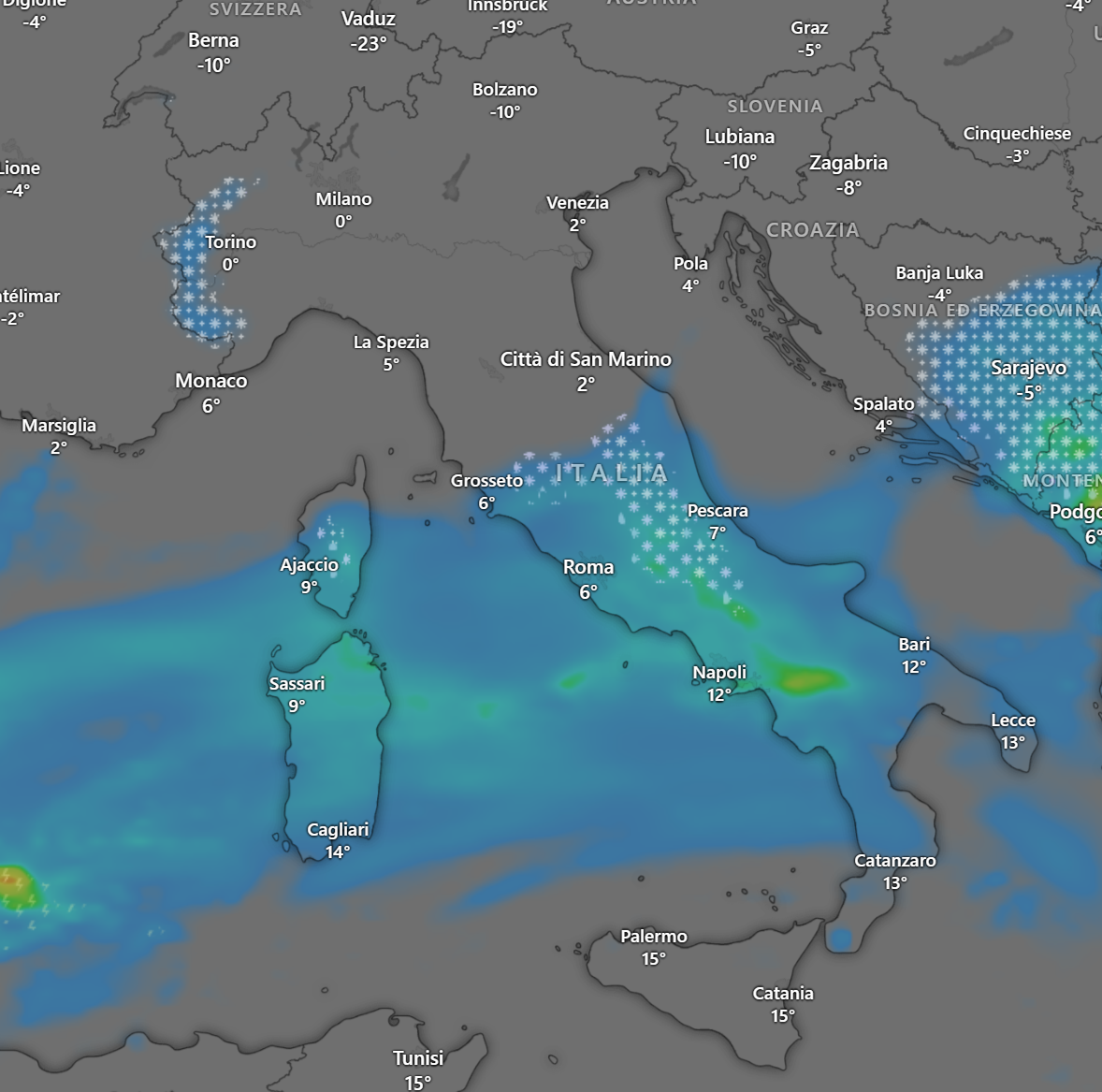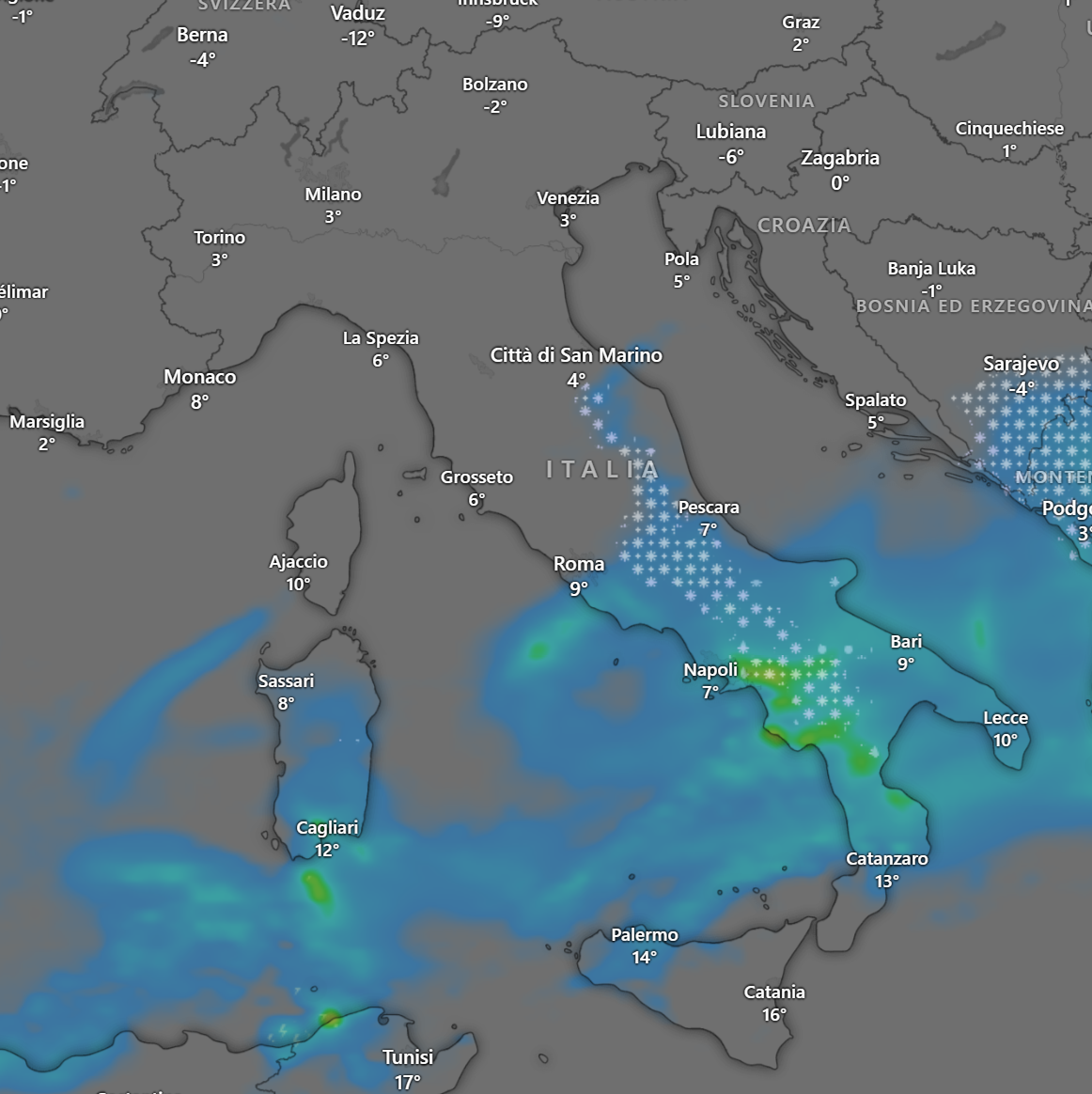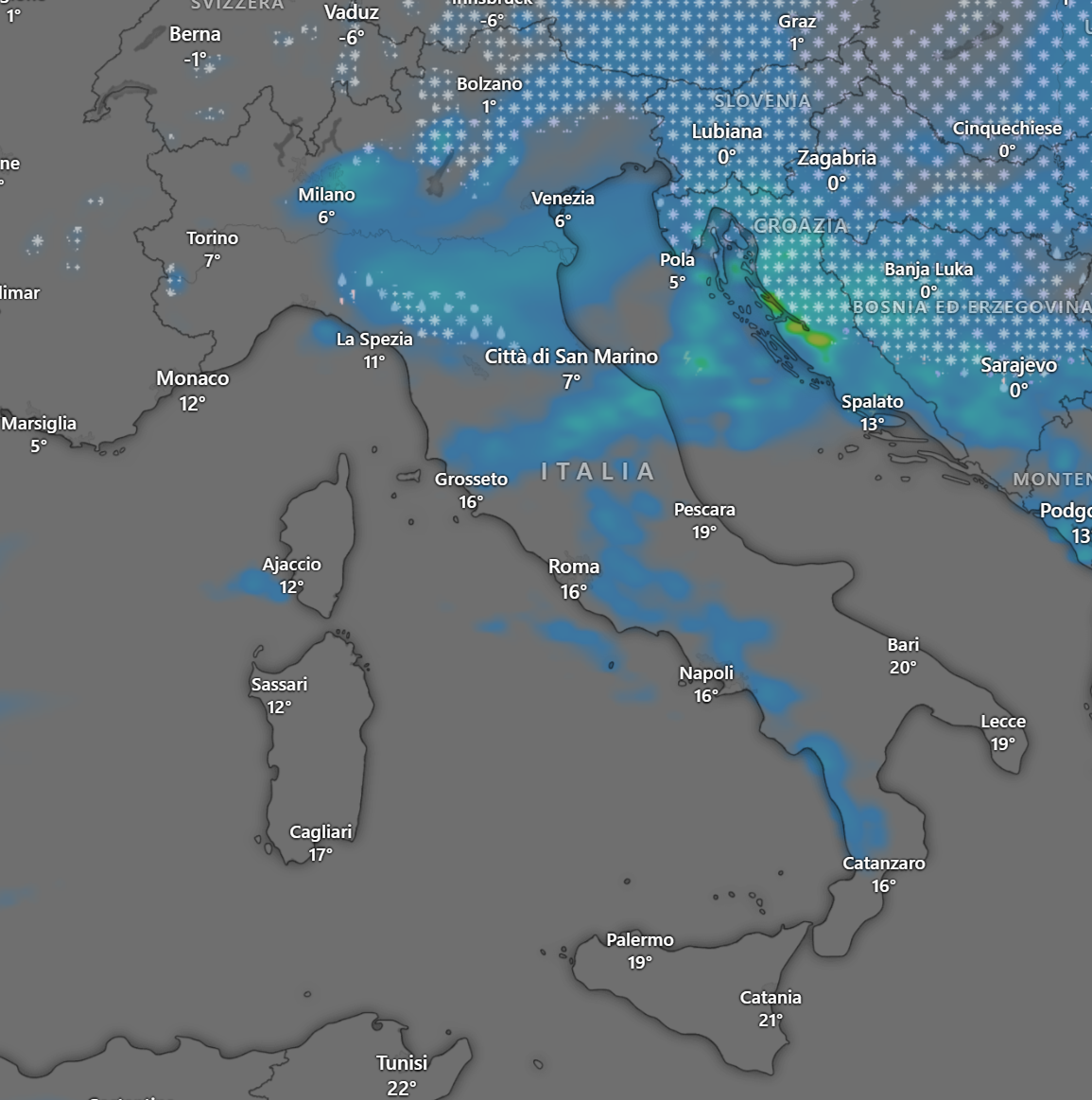 I venti saranno sostenuti di Bora e Grecale, mentre le temperature subiranno una notevole diminuzione, ma per il dettaglio neve, venti e temperature vi rimando agli approfondimenti dedicati sul sito www.meteonews.life e le nostre APP.