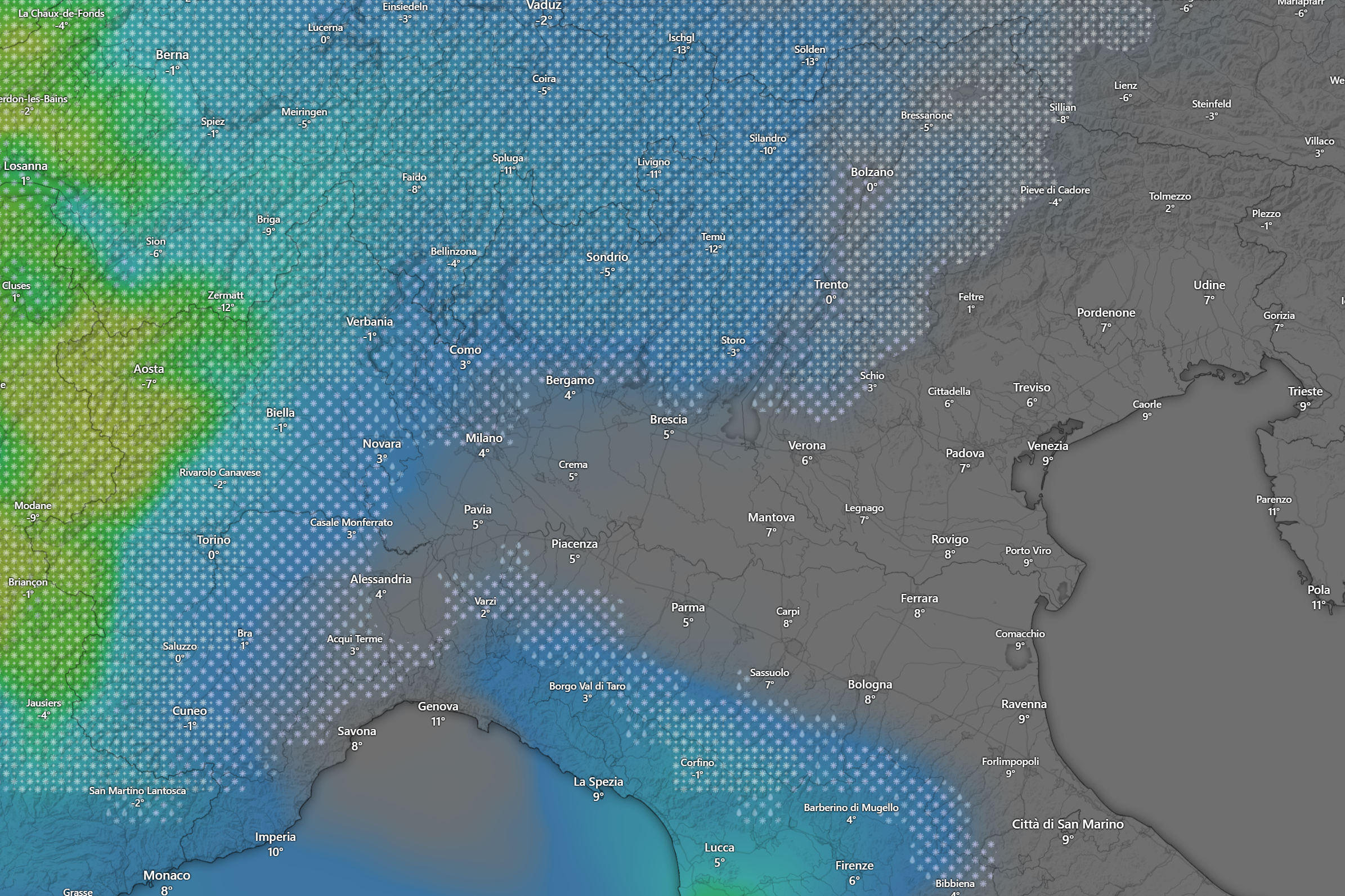 Nella prima mattinata inizieranno le prime nevicate sulle Alpi occidentali alle quote medie.