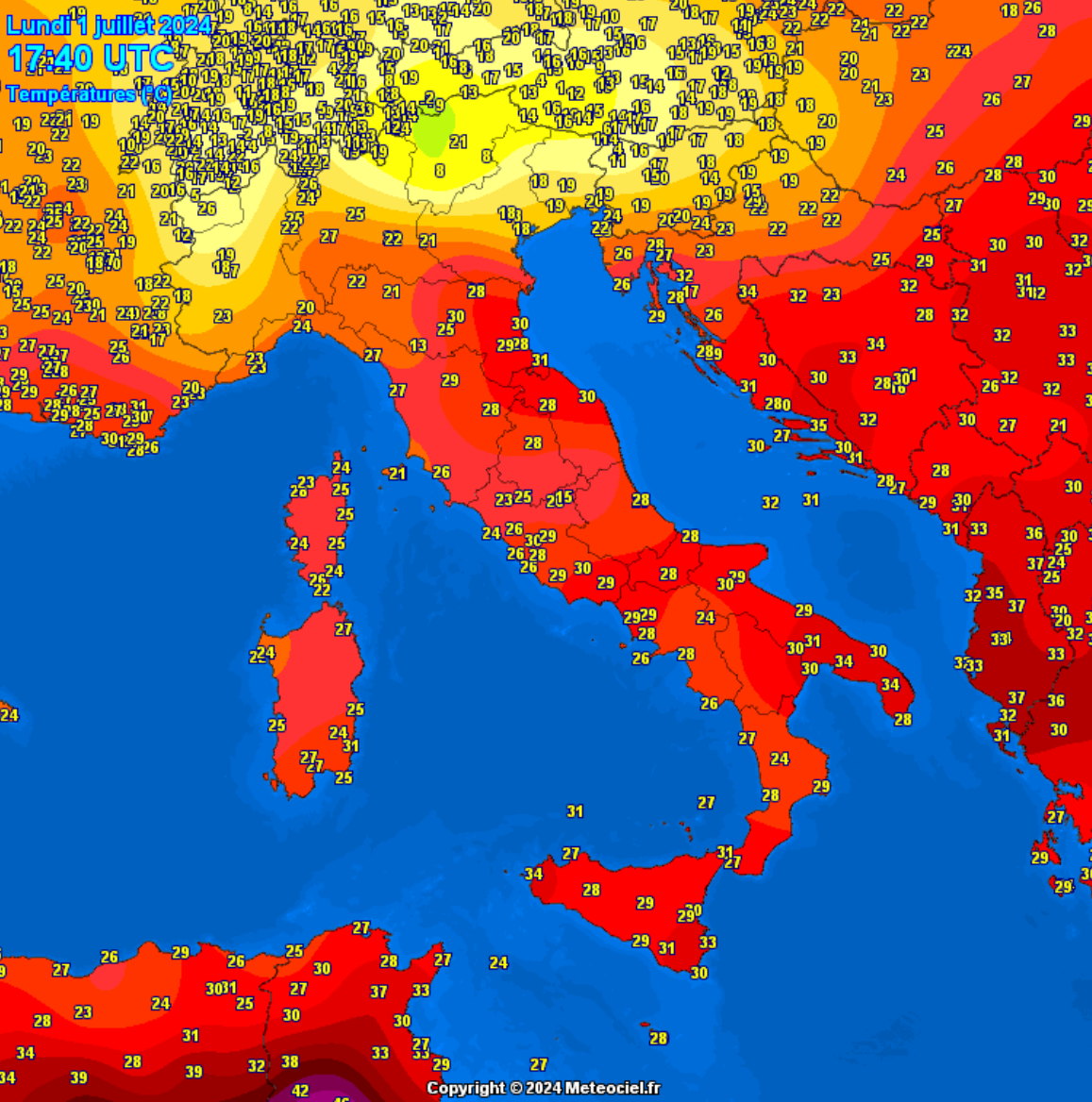 E’ arrivata l’aria fredda che abbiamo previsto da quasi due settimane e che farà diminuire le temperature da Nord a Sud su tutto il Paese di almeno 10° entro Mercoledì 3 Luglio.