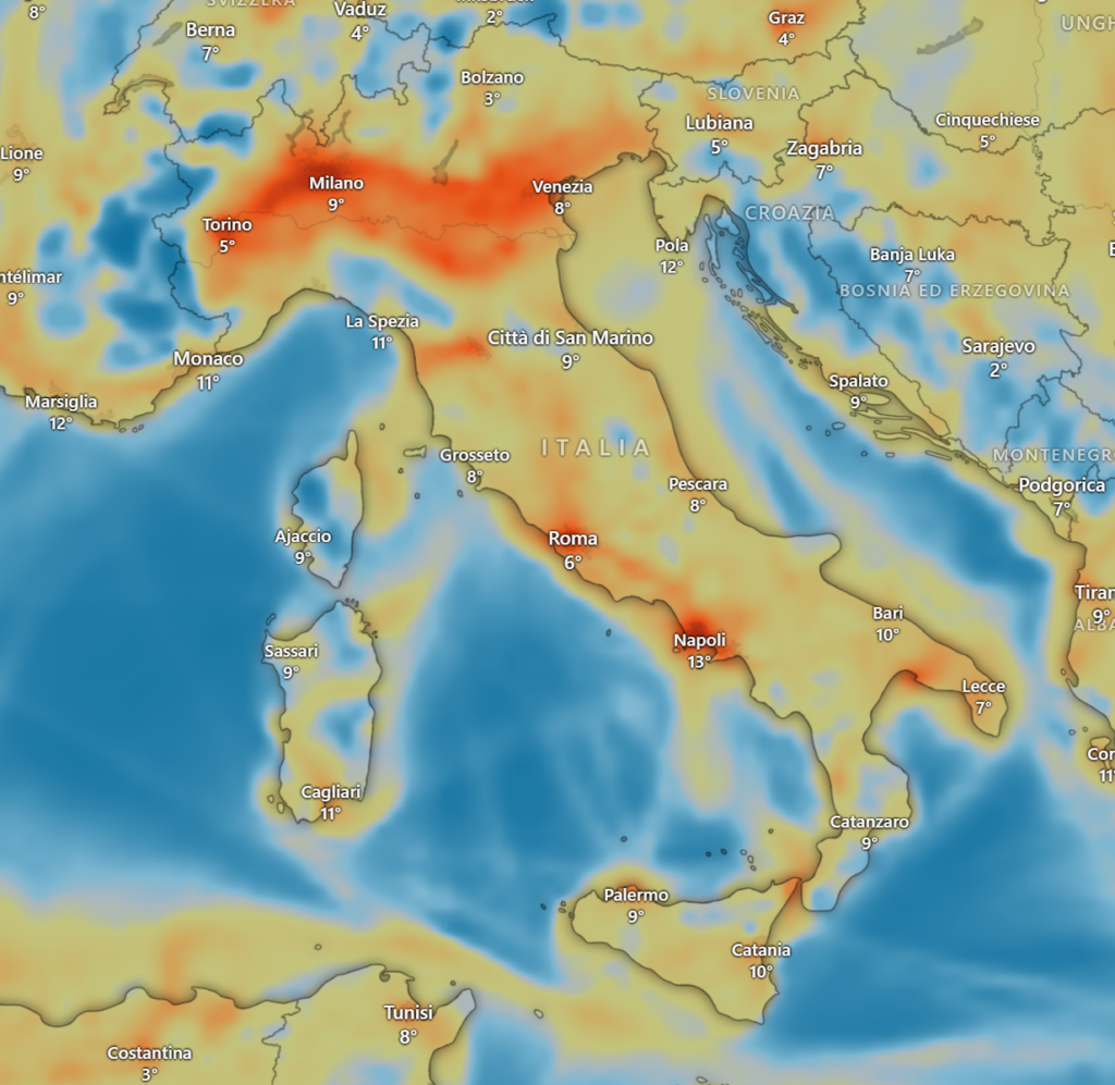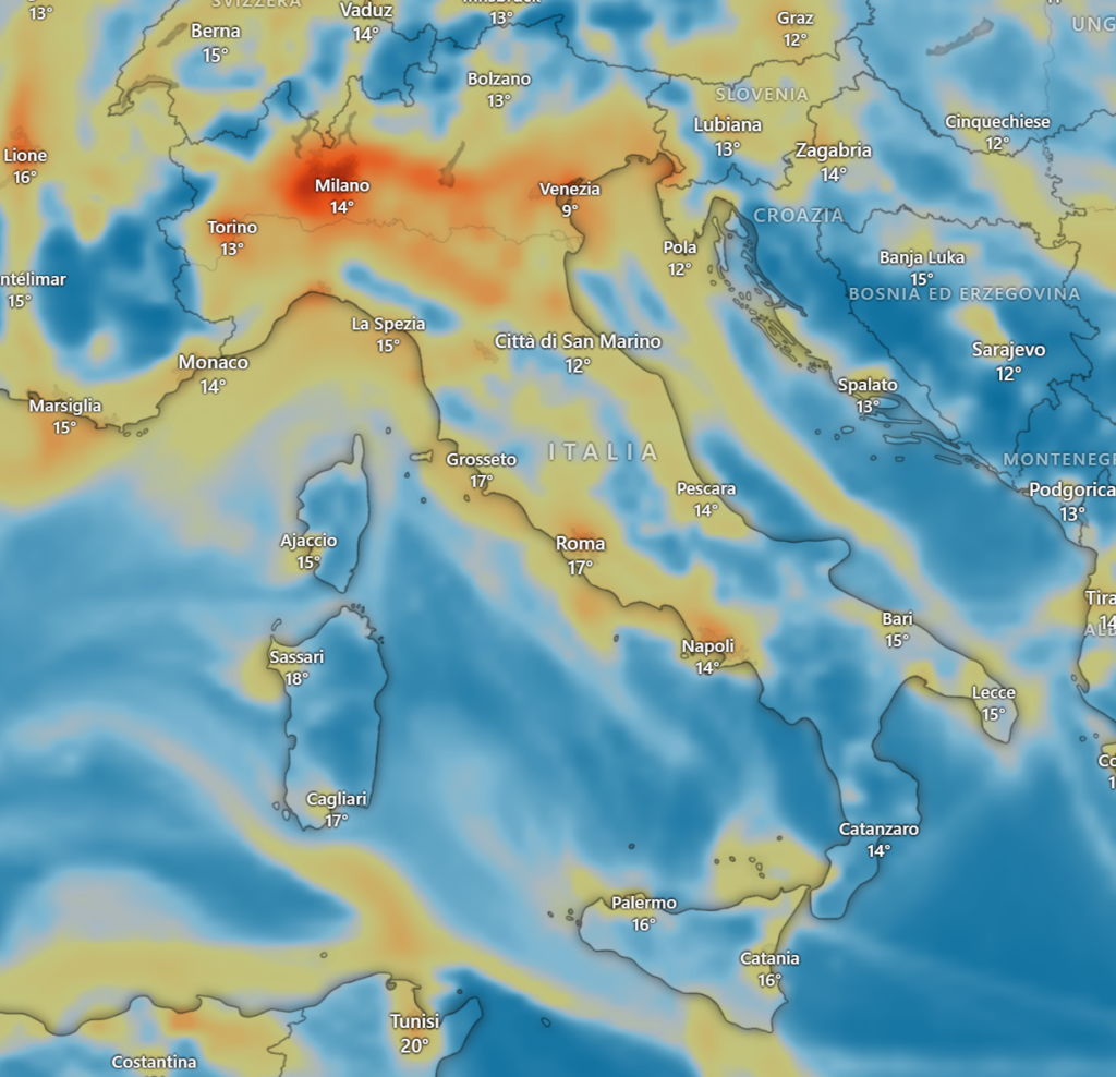 Le condizioni meteorologiche influenzano profondamente la diffusione degli inquinanti: pioggia, vento, nebbia o temperature elevate possono cambiare radicalmente il quadro della qualità aria anche nell’arco di poche ore.