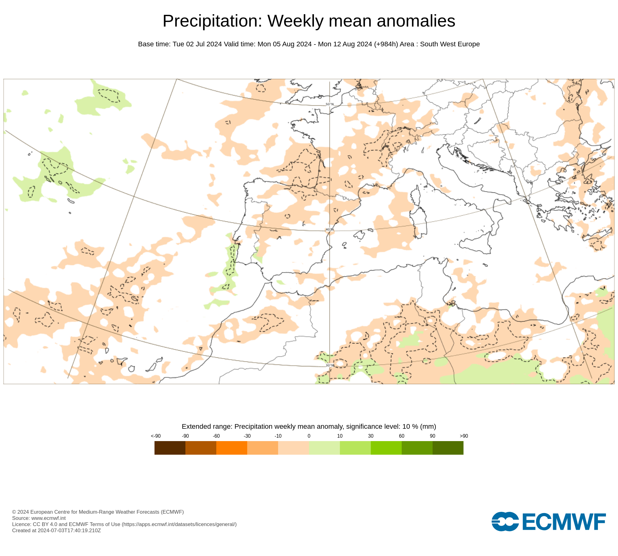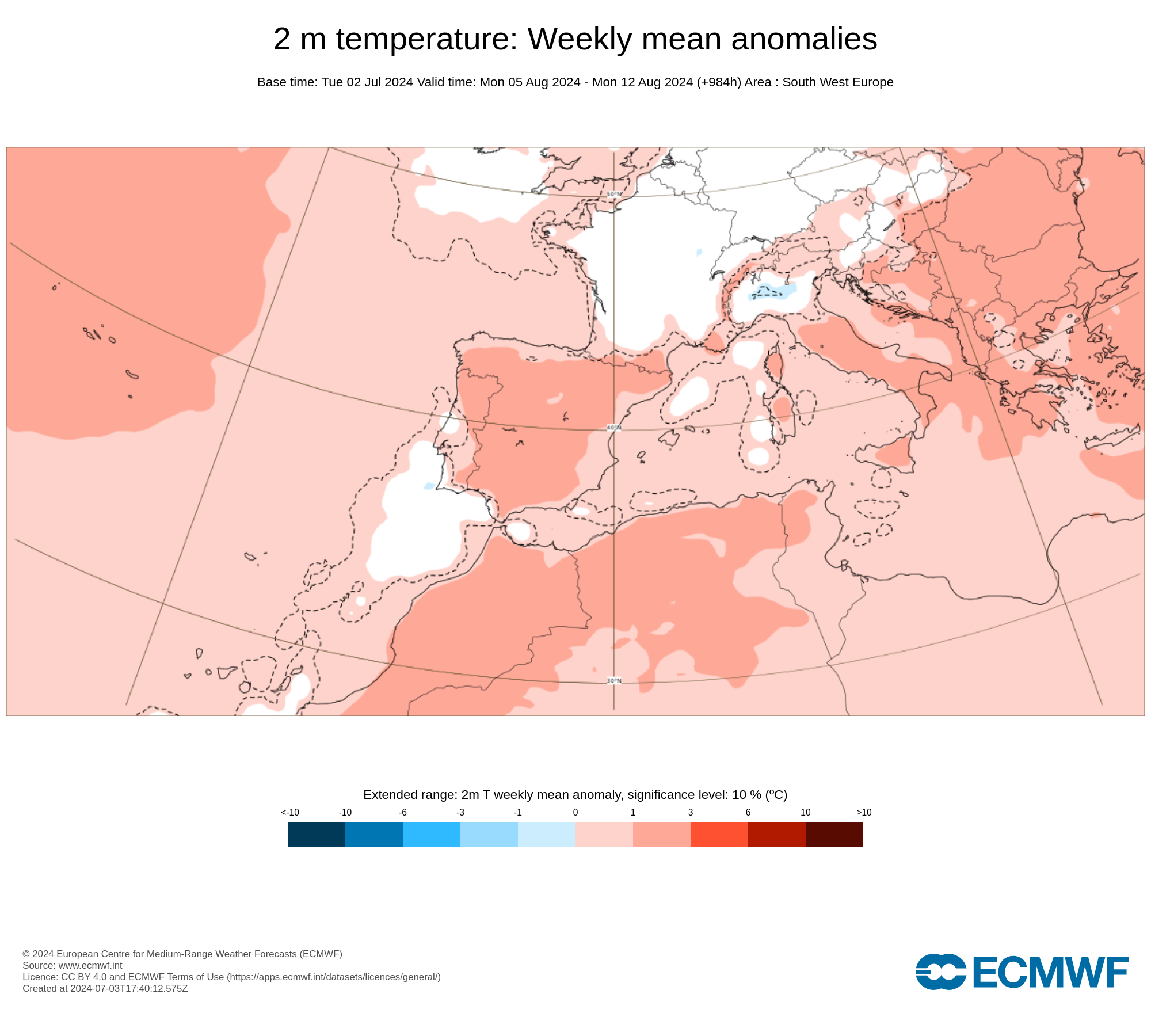 Il prestigioso centro di calcolo Europeo ECMWF, ha emesso la possibile tendenza delle anomalie climatiche, rispetto alle medie del periodo, di piogge e temperature sull’Europa e l’Italia, per i primi dieci giorni di Agosto 2024.