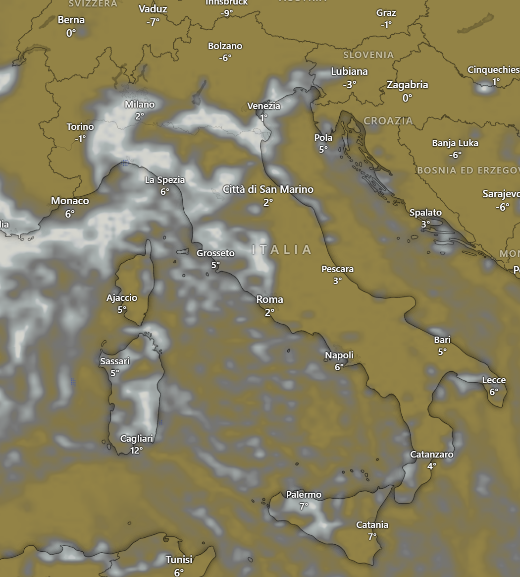 Nelle ore notturne si avranno delle brinate sulle Alpi fino in pianura al Nord, ma anche sull’Appennino alle quote più alte.