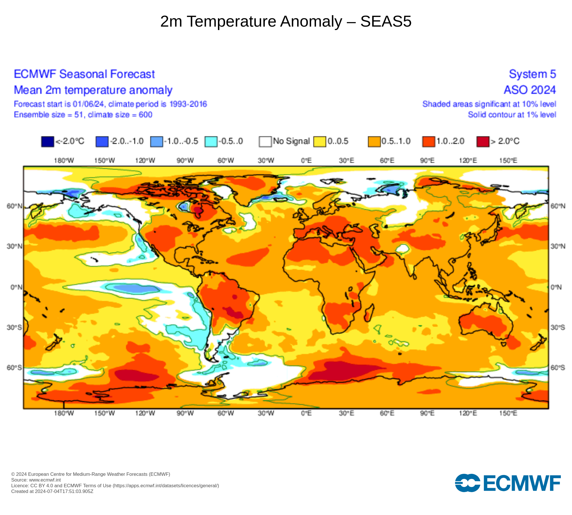ARTICOLO DEL 28 LUGLIO 2024: PREVISIONI METEO STAGIONALI PROBABILISTICHE DELLE ANOMALIE, DI TEMPERATURE E PRECIPITAZIONI, RISPETTO ALLA MEDIA DEL PERIODO 1993 – 2016 ELABORATE DAL CENTRO ECMWF