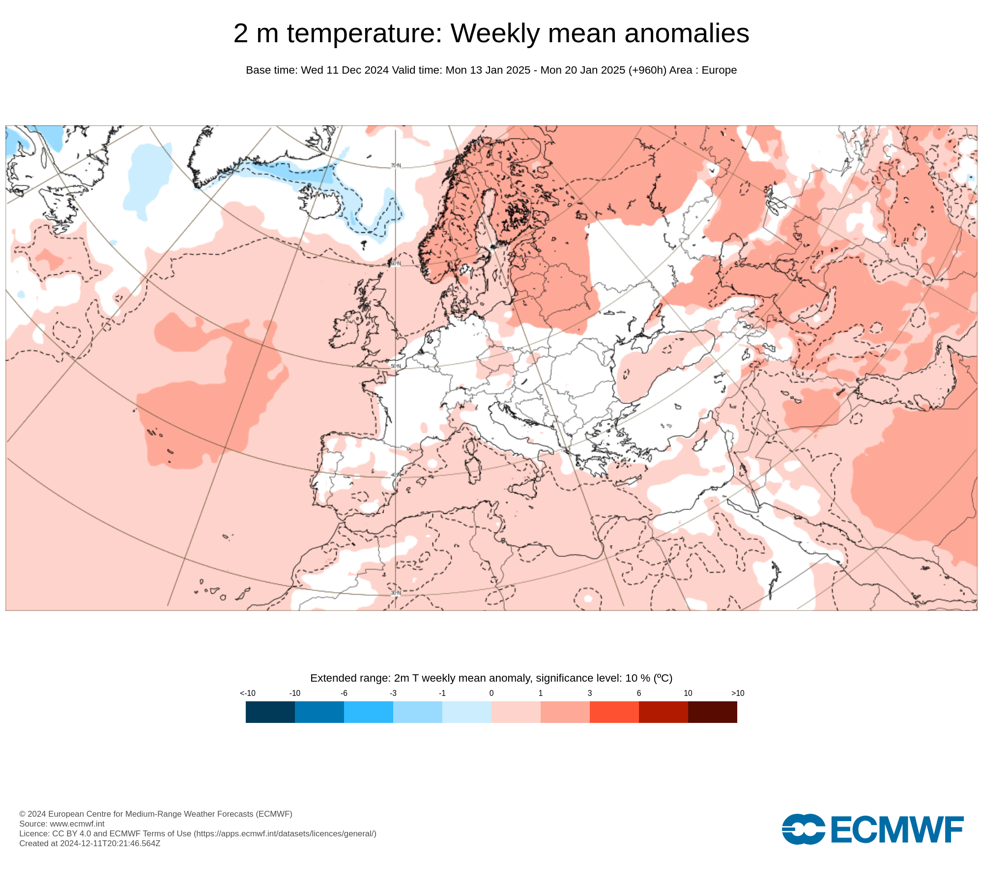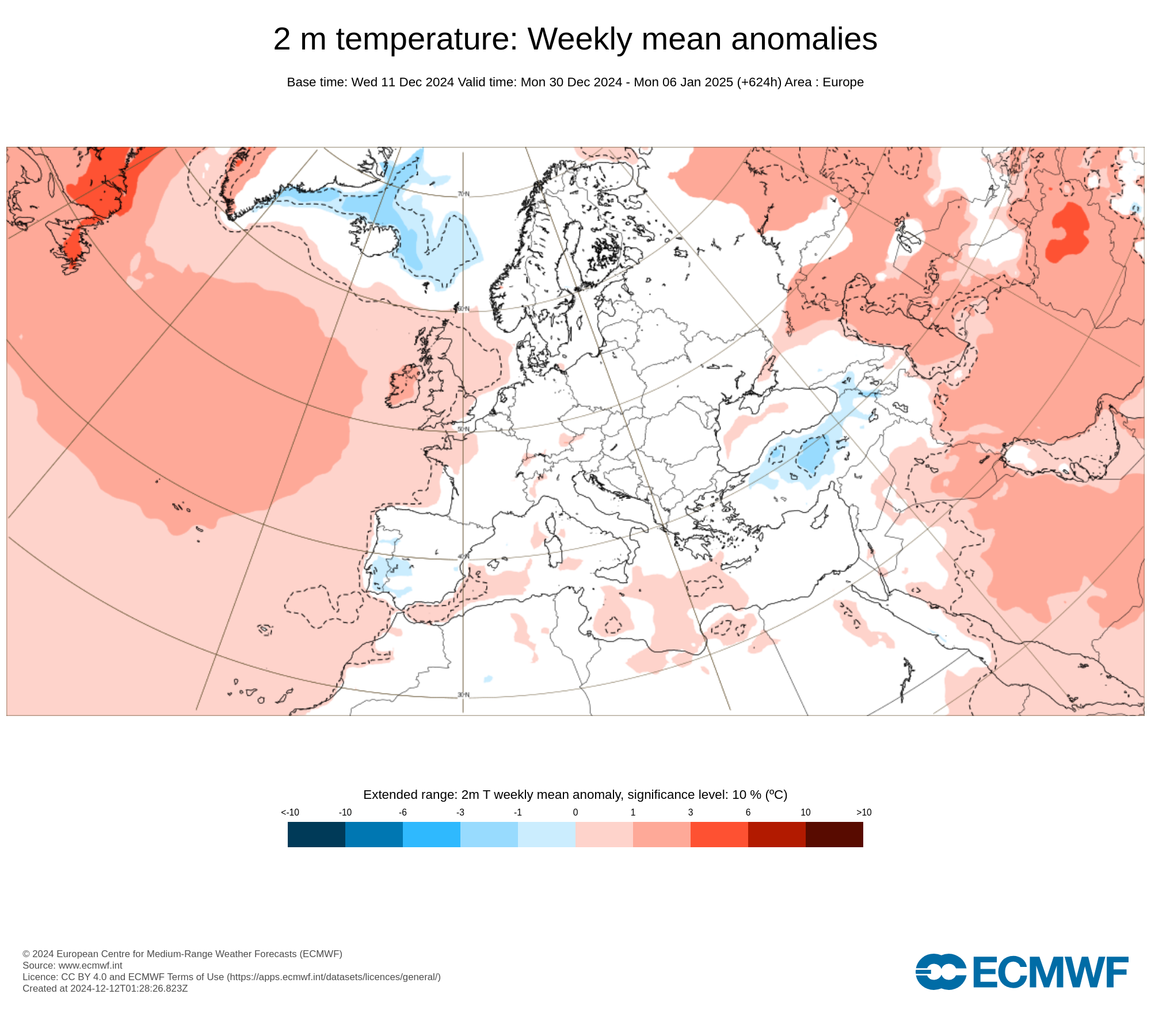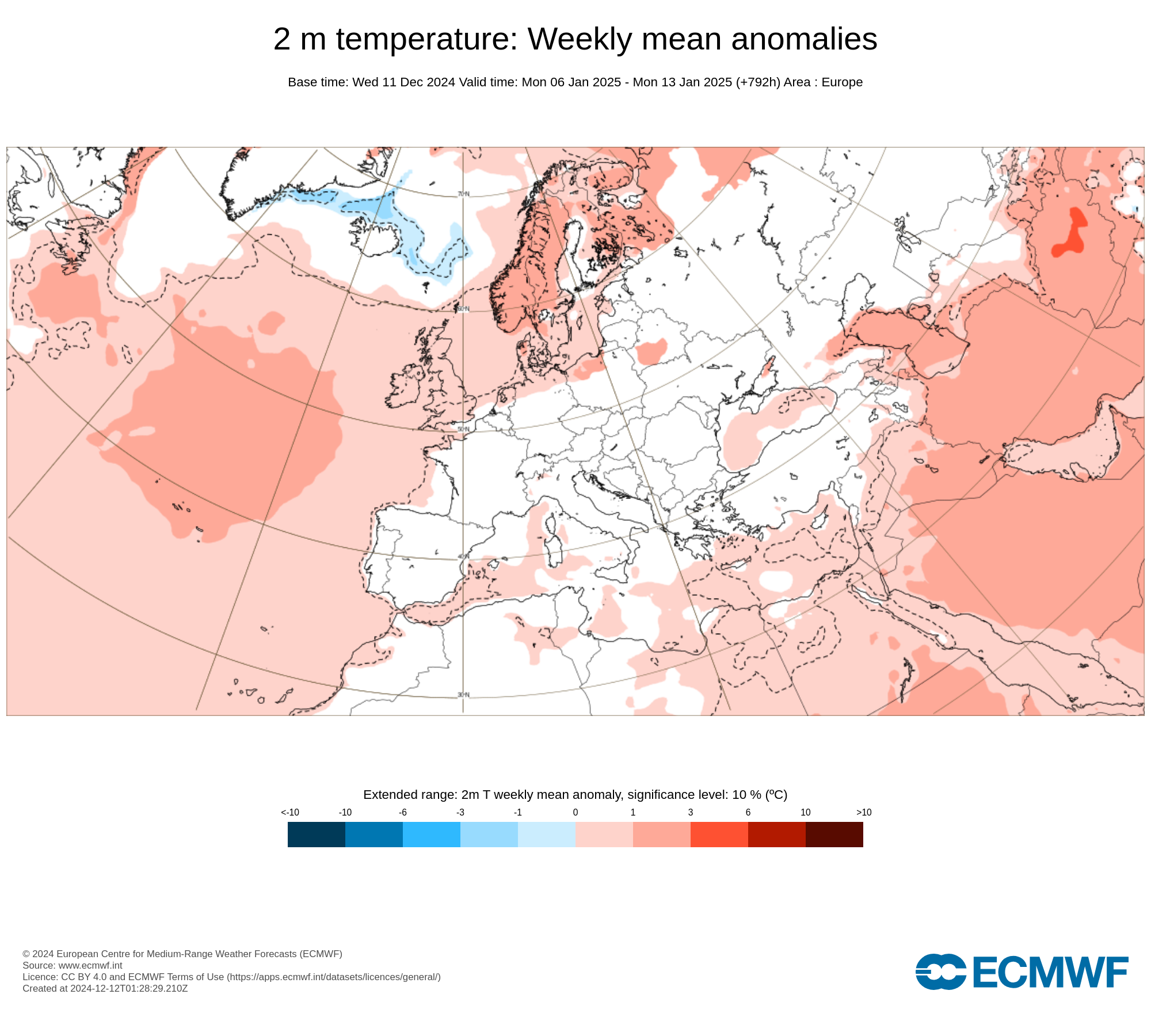 Non sono previste anomalie termiche rilevanti nella prima decade di Gennaio (clicca per ingrandire):
