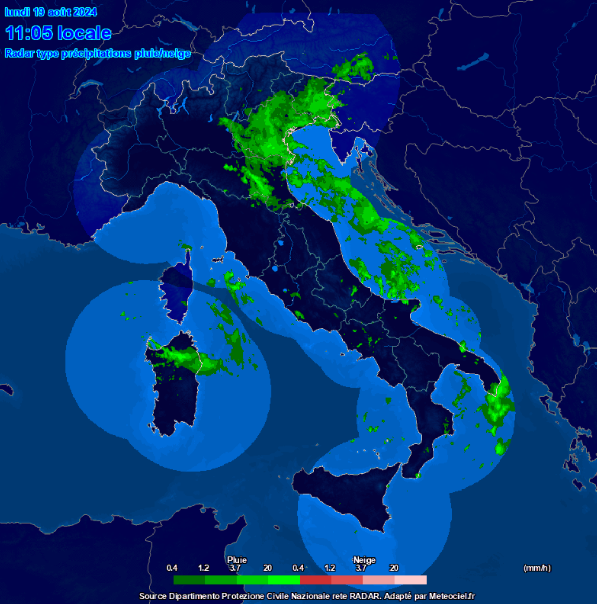 La sua parte più attiva sta interessando il Nord Est con piogge e rovesci, come si vede dall’immagine del radar delle piogge (clicca per ingrandire):