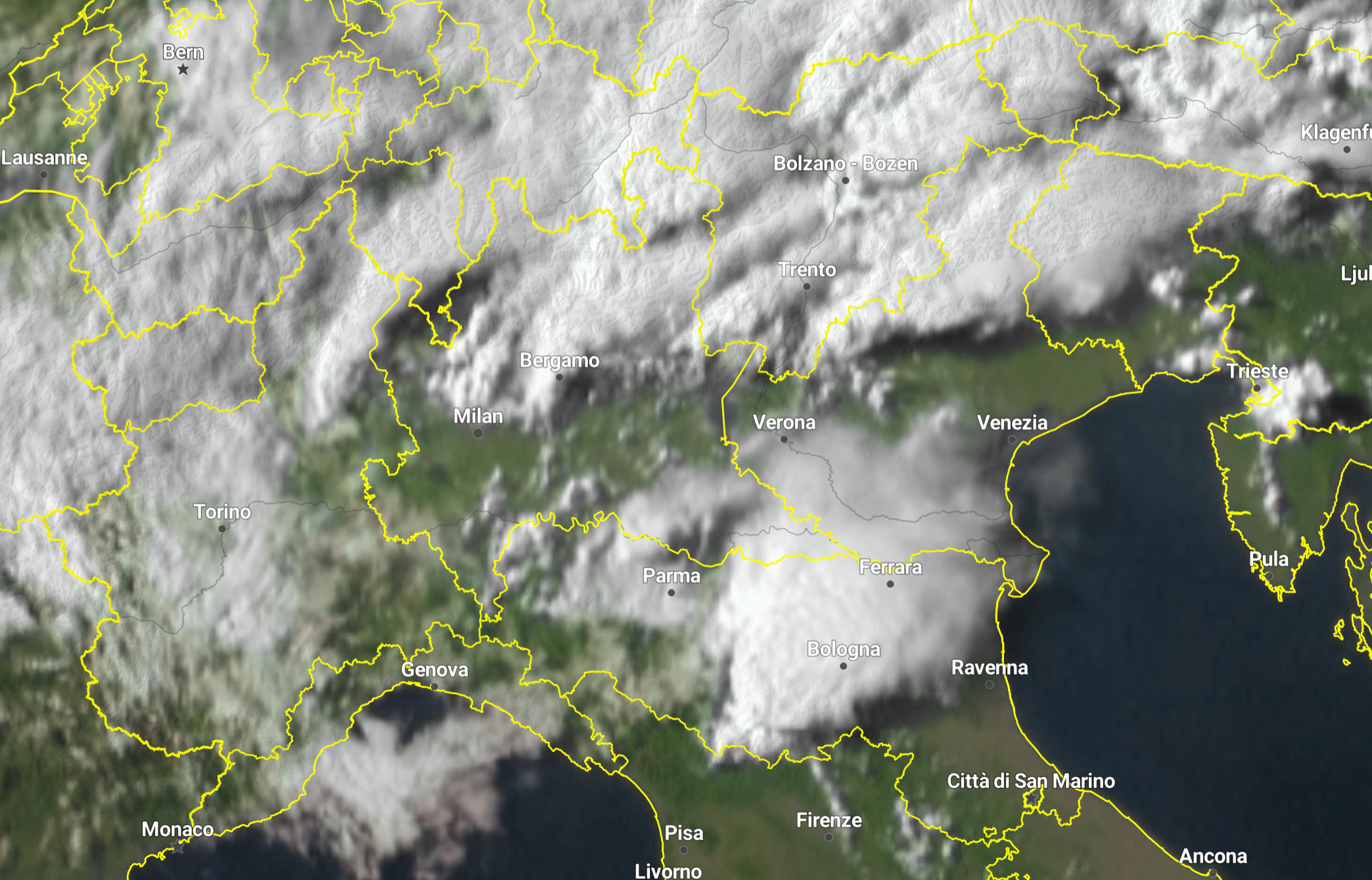 Se guardiamo l’immagine satellitare delle ore 18, il Nord Italia interessato da una nuvolosità irregolare (clicca per ingrandire):