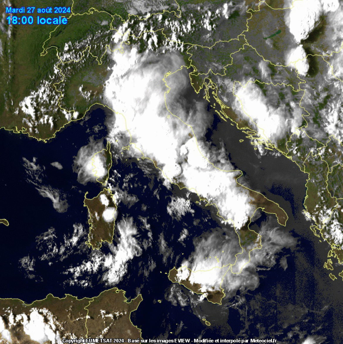 Sempre come da previsione FOCUS: Goccia fredda sull’Italia, con temporali e rinfrescata nel pomeriggio della giornata odierna di Martedì 27 Agosto si sono sviluppati dei temporali ed alcuni sono tuttora in corso, sull’Emilia Romagna centro orientale, Marche, Toscana, Umbria, Lazio, Abruzzo, Molise, Campania, Basilicata, Calabria, Sicilia.