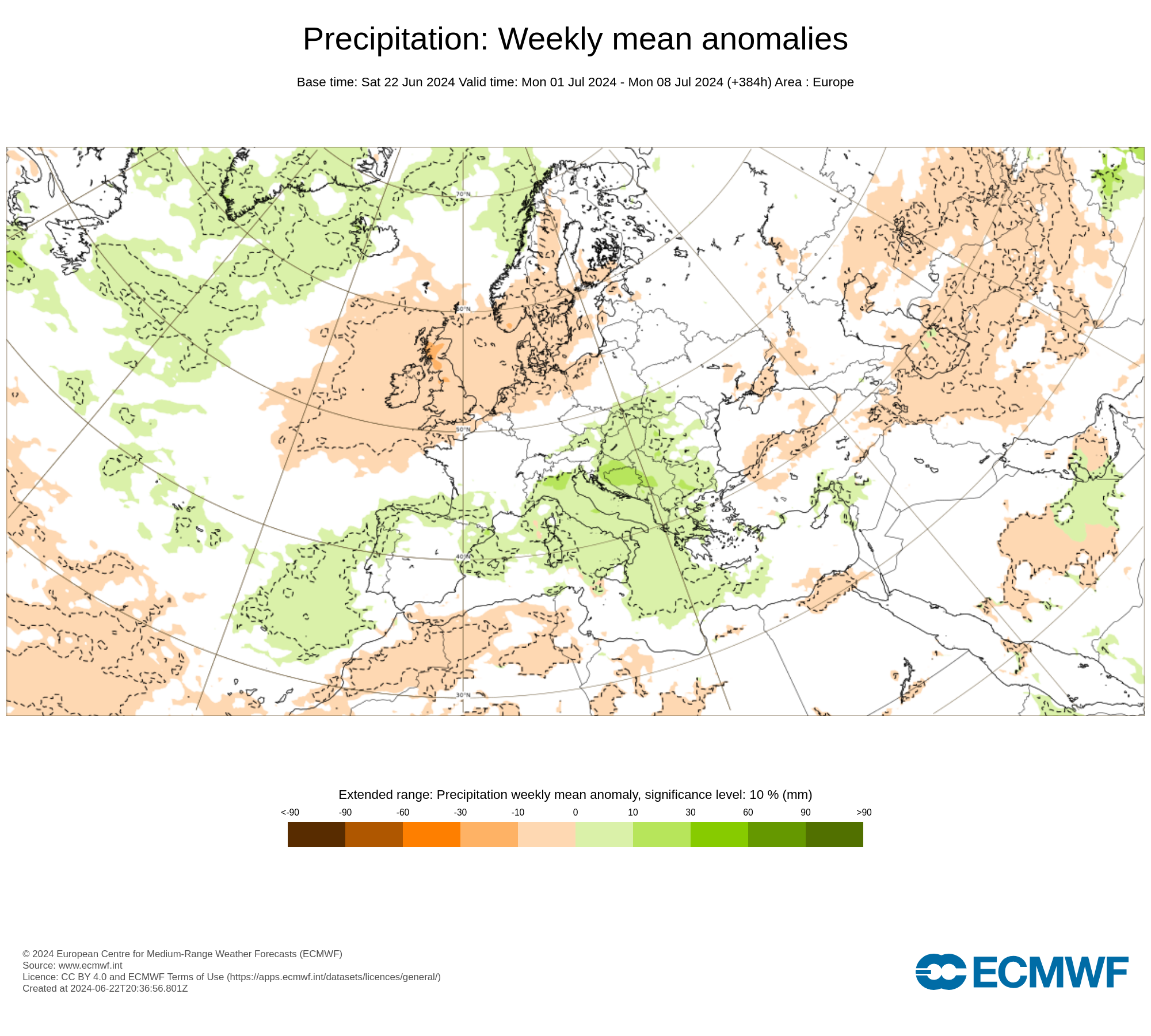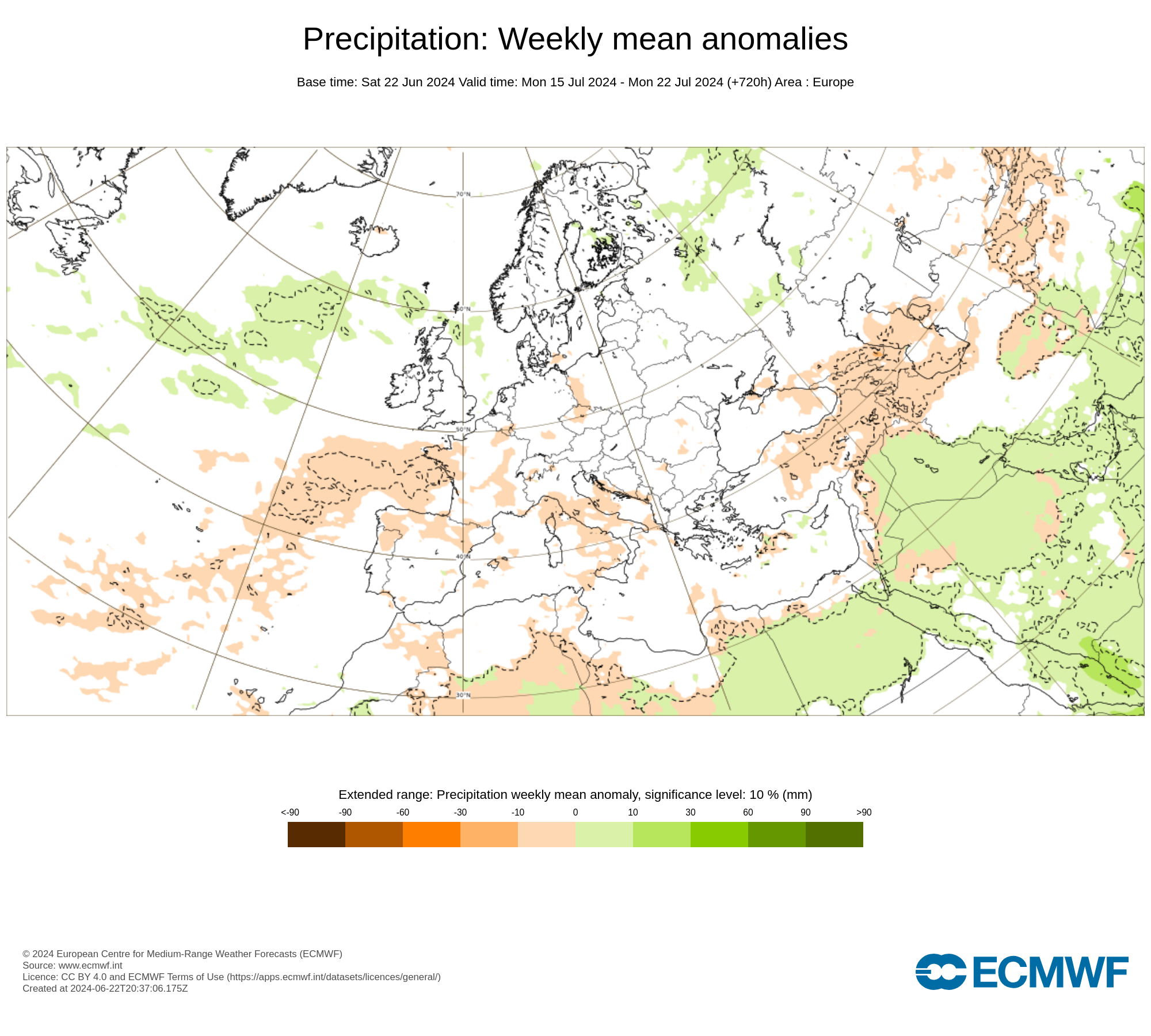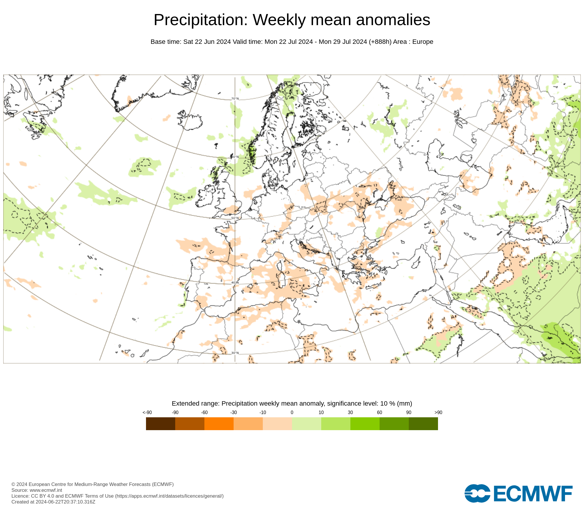 Il prestigioso centro di calcolo Europeo ECMWF, ha emesso la possibile tendenza delle anomalie climatiche, rispetto alle medie del periodo, di piogge e temperature sull’Europa e l’Italia, per il mese di Luglio 2024.