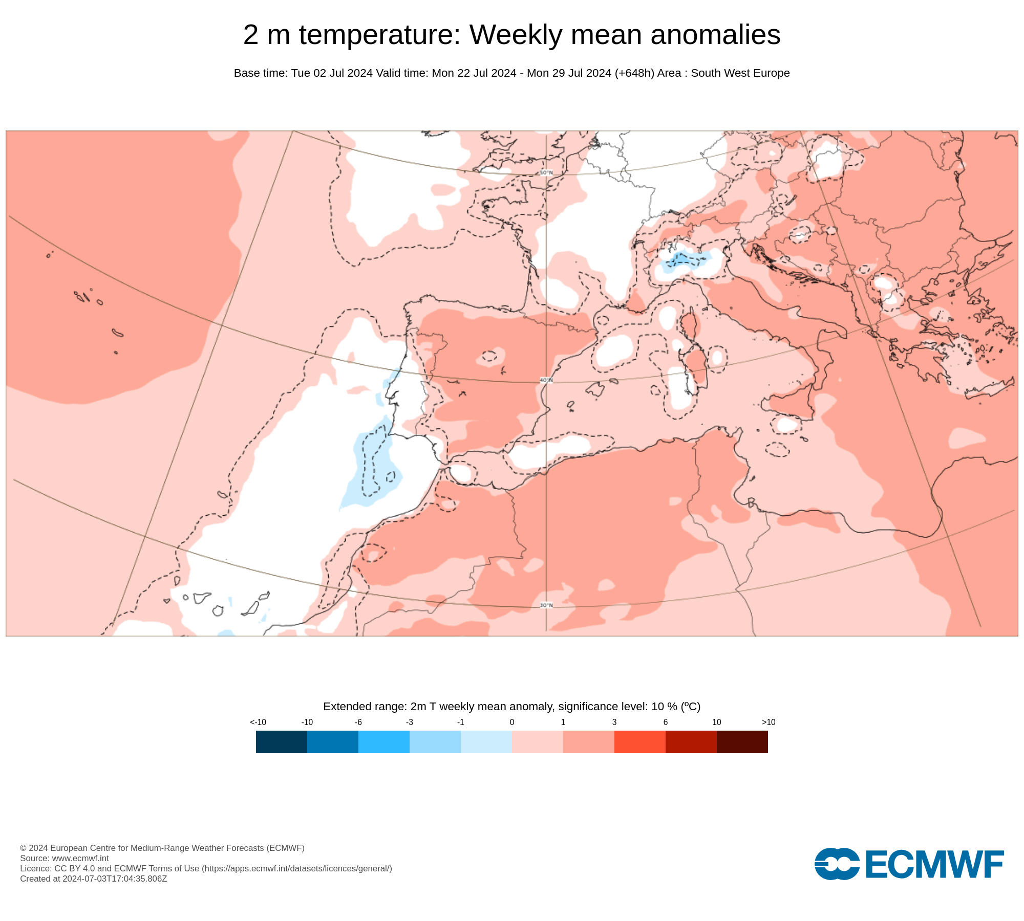 Il prestigioso centro di calcolo Europeo ECMWF, ha emesso la possibile tendenza delle anomalie climatiche, rispetto alle medie del periodo, di piogge e temperature sull’Europa e l’Italia, per il mese di Luglio 2024.