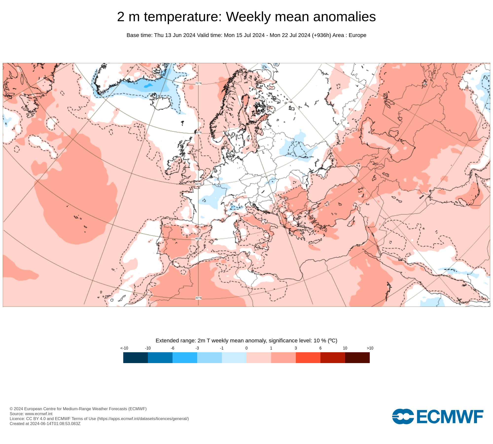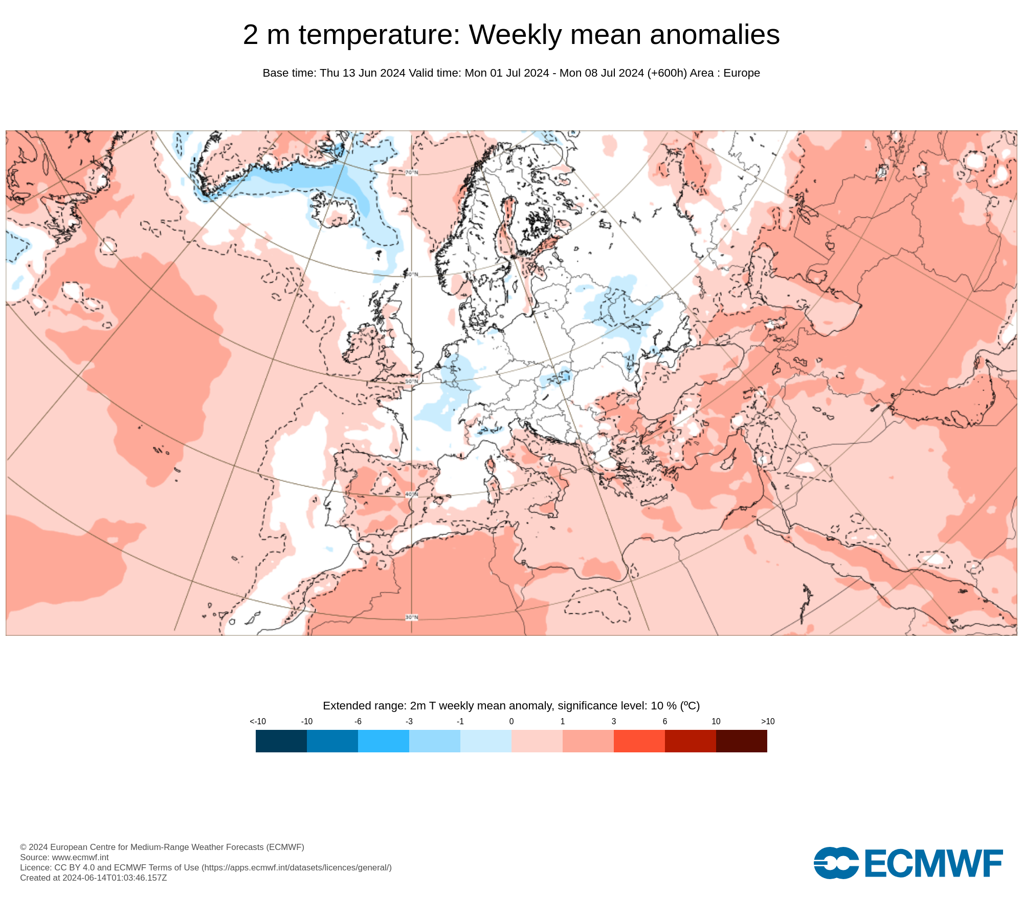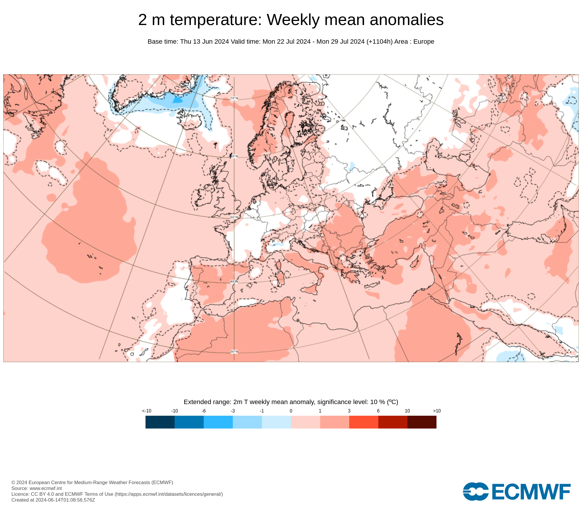 ARTICOLO DEL 14 GIUGNO 2024: PREVISIONI METEO MENSILI DELLE ANOMALIE MEDIE DI TEMPERATURE E PRECIPITAZIONI, ELABORATE DAL CENTRO ECMWF