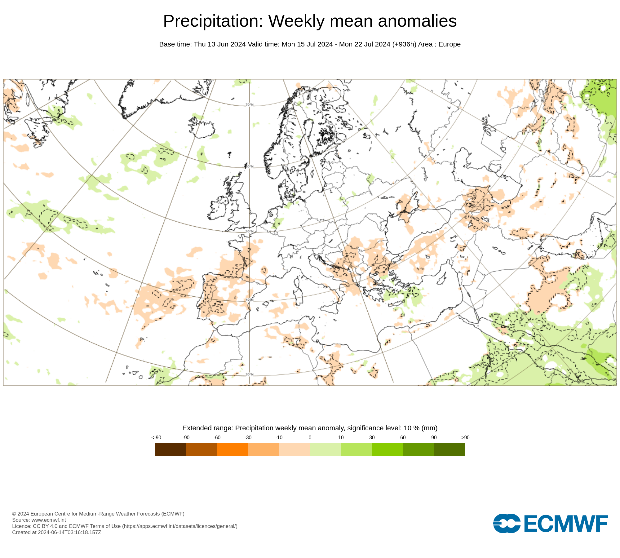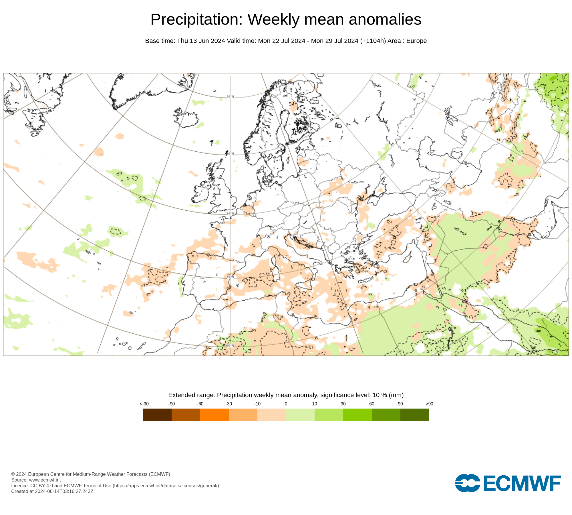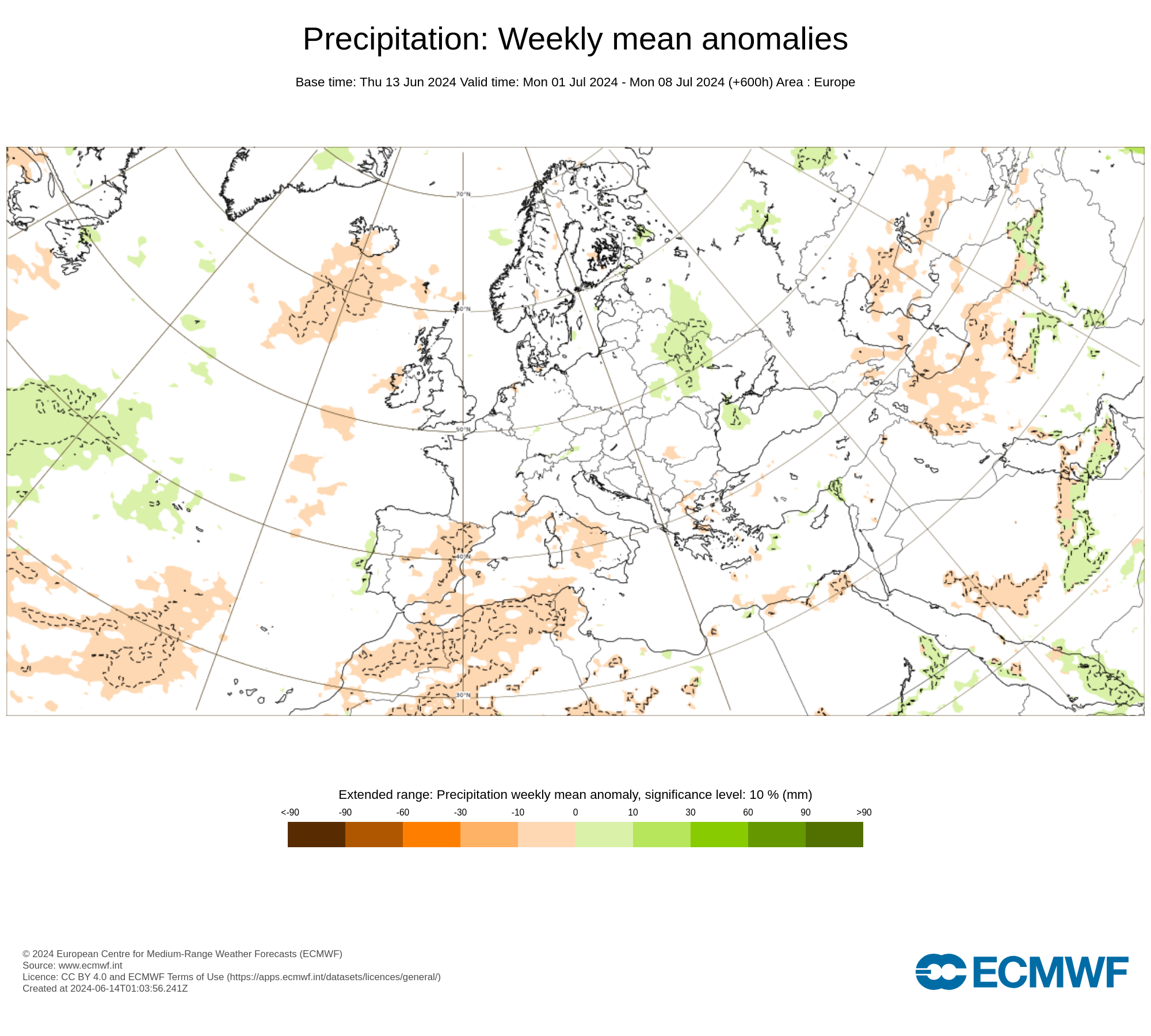 ARTICOLO DEL 14 GIUGNO 2024: PREVISIONI METEO MENSILI DELLE ANOMALIE MEDIE DI TEMPERATURE E PRECIPITAZIONI, ELABORATE DAL CENTRO ECMWF