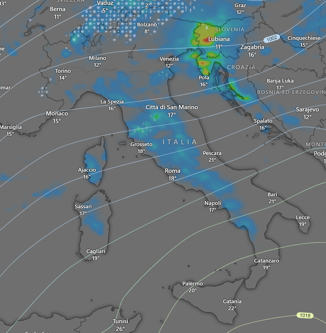 Saranno possibili deboli piogge anche sul lazio, la Campania e la Calabria, mentre su tutta la catena Alpina avremo delle nevicate a quote medio basse.