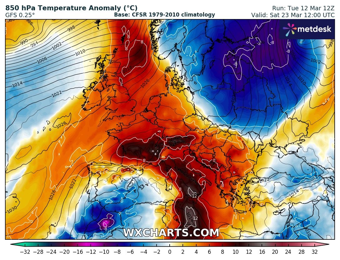 Adesso sembra avvalorarsi questa tesi ed entrambi i modelli vedono, proprio nella seconda decade di Marzo temperature ben al di sopra delle medie, rispetto al periodo compreso tra il 1979 ed il 2010.