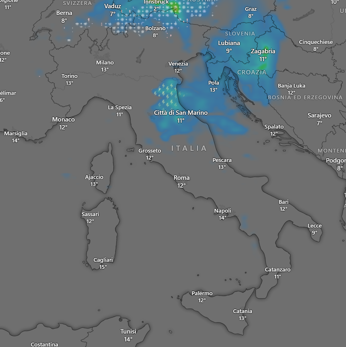 Nel tardo pomeriggio di Giovedì 21 Marzo una veloce perturbazione, approderà sull’alto Adriatico, portando piogge sul Veneto ed Emilia Romagna orientale, mentre sulle Alpi del Trentino vi saranno delle nevicate a quote medie.