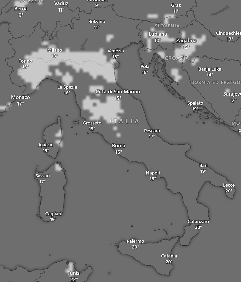 Da Martedì 15 a Giovedì 17 saranno possibili nebbie sulle pianure del Nord, specie nelle ore notturne e nelle prime ore del mattino con visibilità anche inferiore ai 70 metri