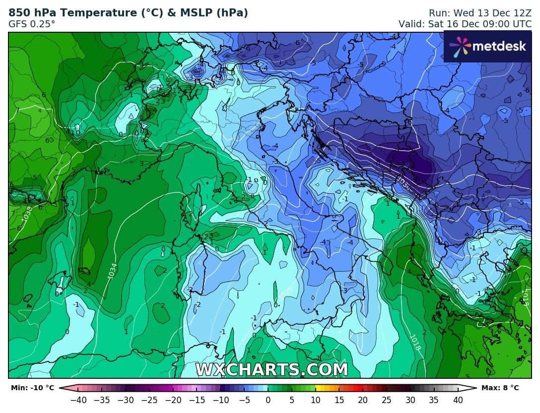 Il gelo che ritorna Sabato 16 e Domenica 17 rimane confermato sia dal modello Americano che da quello Europeo come si evince dagli elaborati