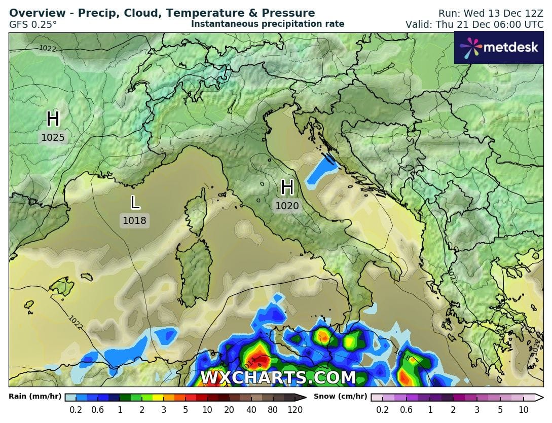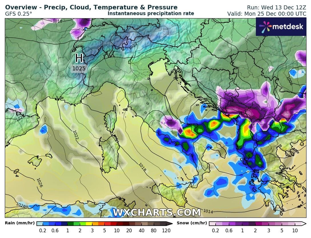 - Il Giorno di Natale e Santo Stefano con piogge e neve sulle Alpi