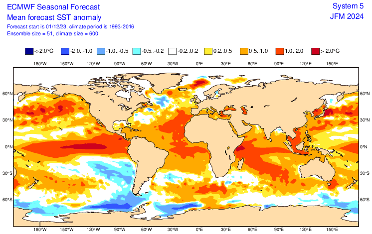 Altra variabile è il fenomeno del Nino ancora molto forte capace di influenzare il clima mondiale perché Un forte evento di El Niño, di solito influenza anche la corrente del golfo, cioè quel nastro trasportatore che porta le calde acque tropicali del golfo del Messico fino alla Groerlandia, dove riemergono per una differenza di temperatura, liberando il calore nell’atmosfera, rendendo temperato il clima del Nord Europa, altrimenti sarebbe molto più freddo considerando che siamo circa alle latitudini del Canada dove l’inverno è molto più freddo.