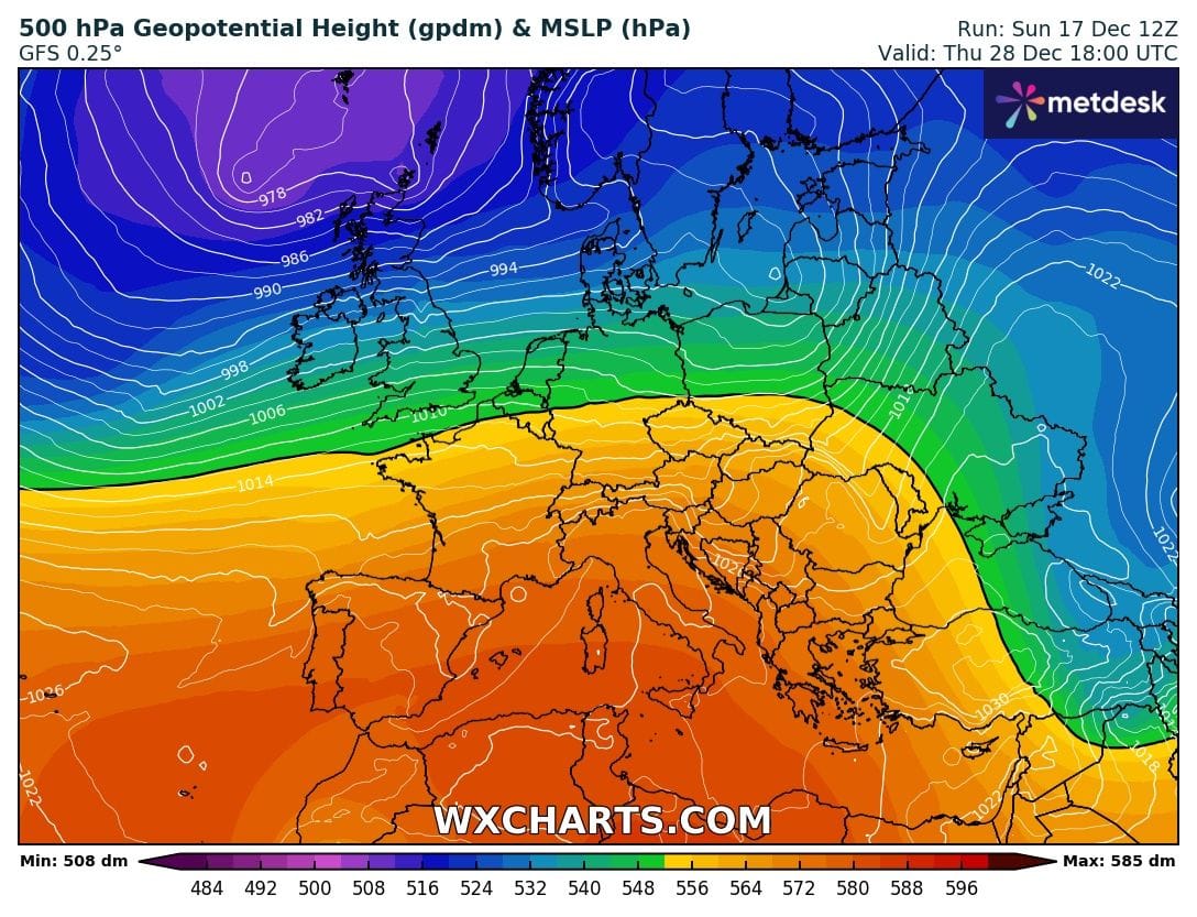 L’apice dell’anticiclone si dovrebbe raggiungere intorno al 28 Dicembre per poi sgonfiarsi gradualmente, ecco l’elaborato: