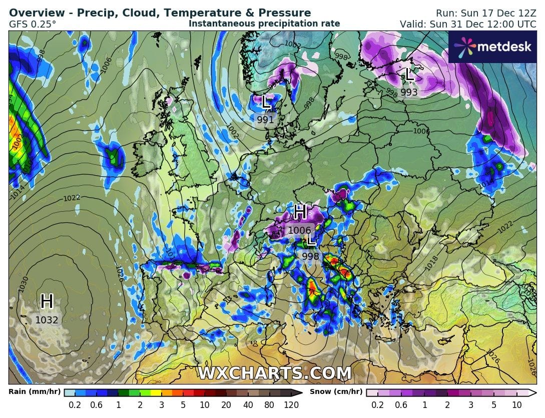 Mentre per l’ultimo dell’anno il modello GFS mostra una prima perturbazione che riesce a raggiungere l’Italia dopo tanti giorni: