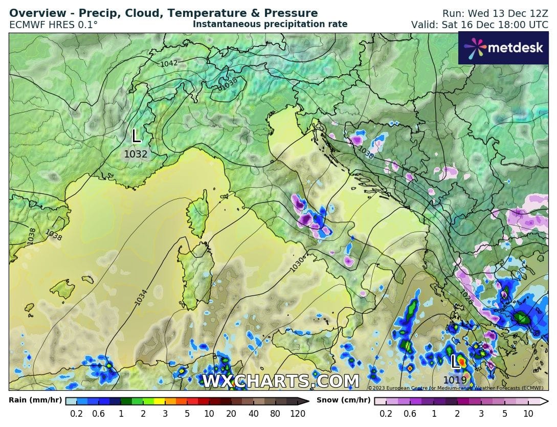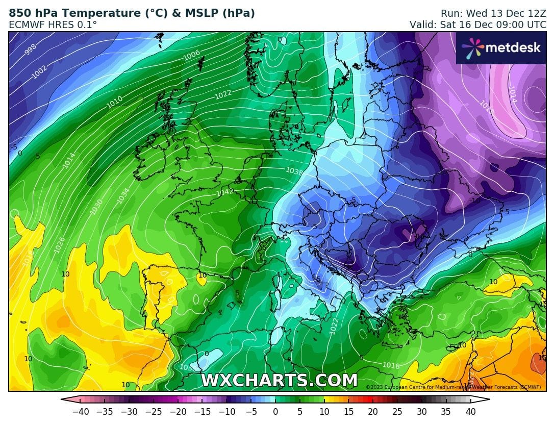 Come mostra l’elaborato grafico del prestigioso centro di elaborazione Europeo nella notte tra sabato e domenica farà molto freddo con temperature fino a -14° sulle Alpi e tutto il Nord con temperature comprese tra i -4° e 0 gradi, mentre sul resto d’Italia saranno comprese tra gli 0 ed i 4°.