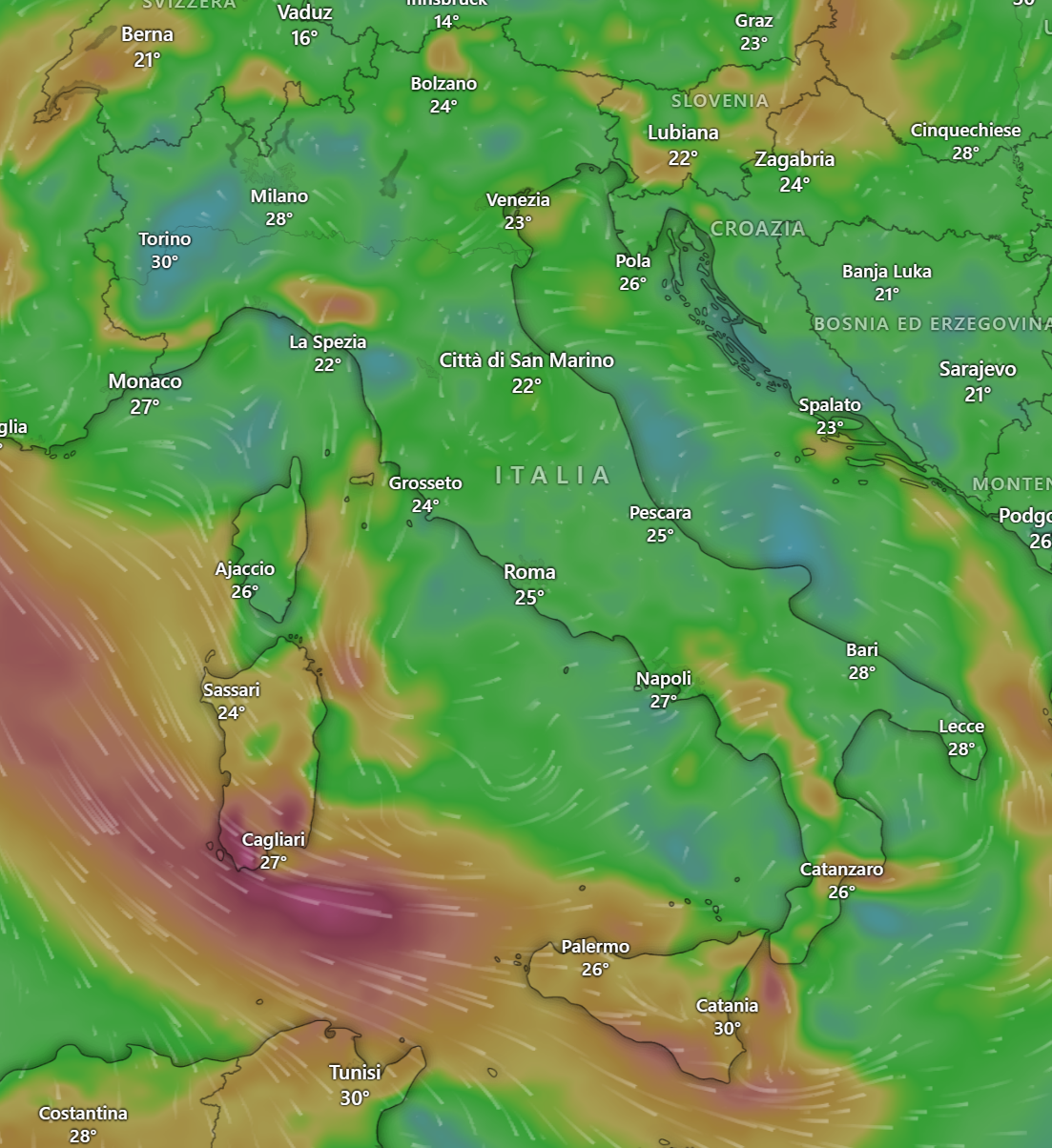 Come già ampiamente previsto con il Maestrale e la Bora, le temperature diminuiranno ulteriormente nella giornata odierna di Lunedì 19 e Martedì 20 Agosto.
