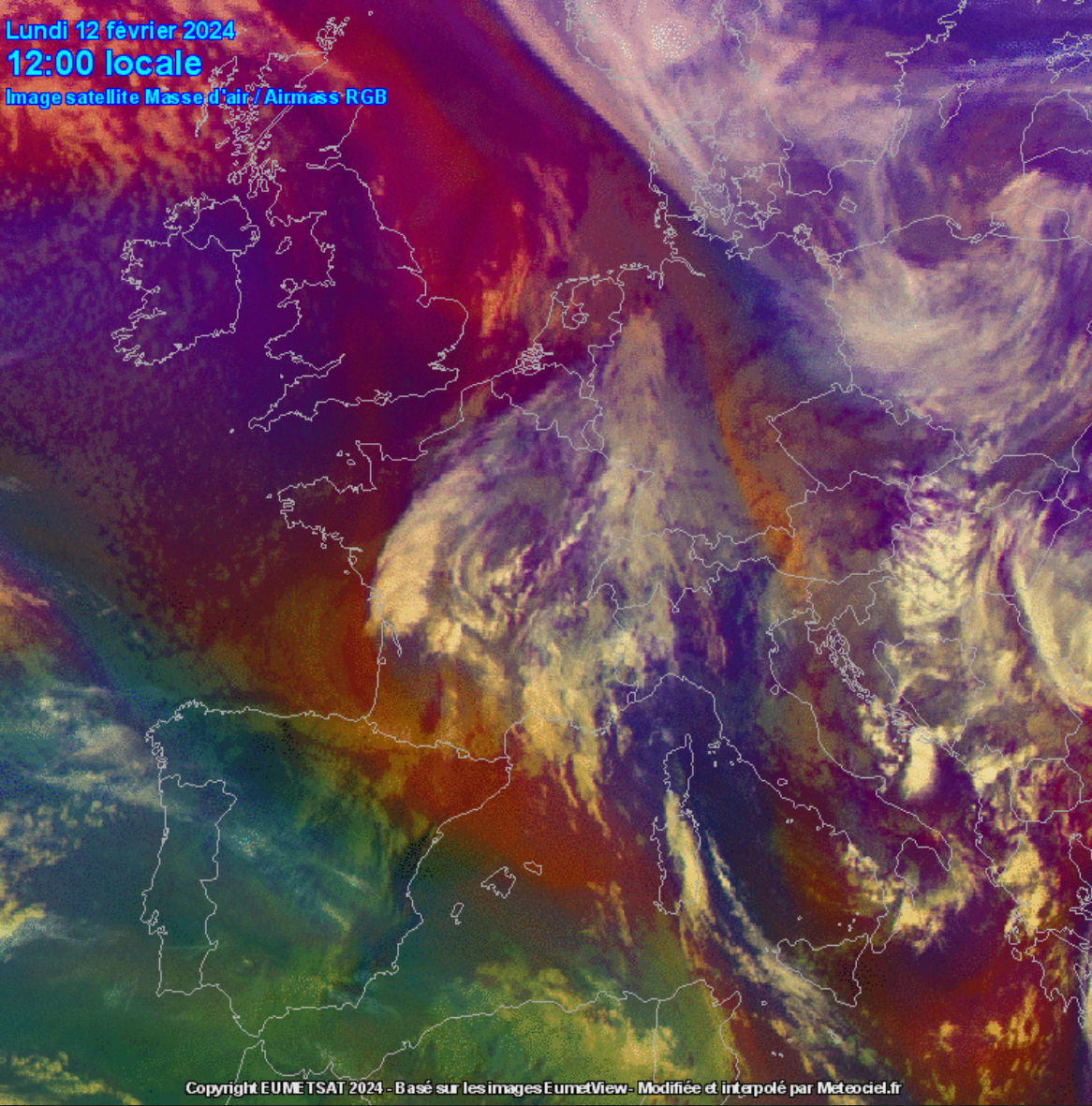 Questa è la situazione attuale vista dal Satellite notiamo che rosso blu è aria più fredda che viene spinta verso i Balcani, mentre quella di colore giallo verde è l’aria più mite spinta dall’Anticiclone Africano: