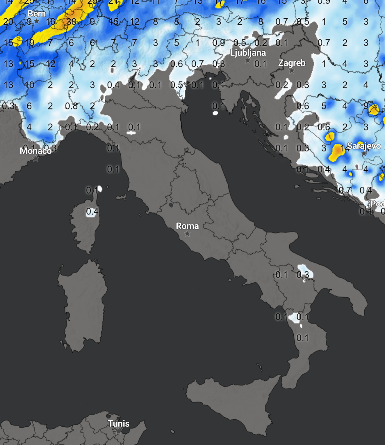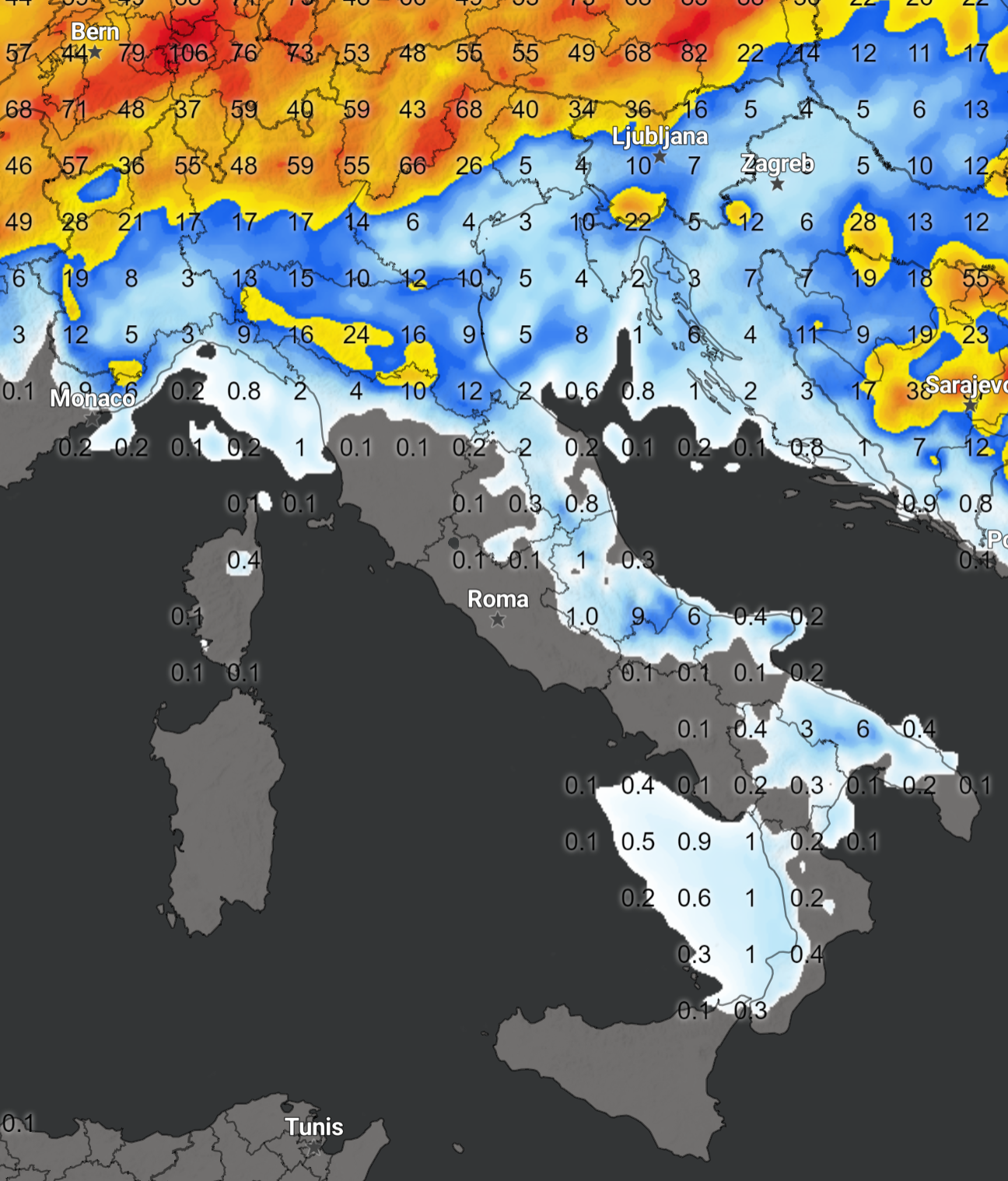 Negli elaborati sono presenti i quantitativi di pioggia in millimetri e ricordo che ogni millimetro corrisponde ad un litro di acqua per metro quadro e quando si tratta di una goccia fredda in quota, è molto difficile prevedere con esattezza le precipitazioni rispetto ad una canonica perturbazione.