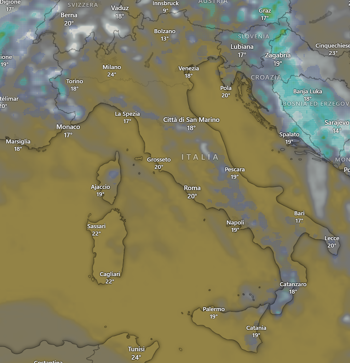 Le temperature si manterranno su valori gradevoli, compresi tra i 19 ed i 24° su tutto lo Stivale: