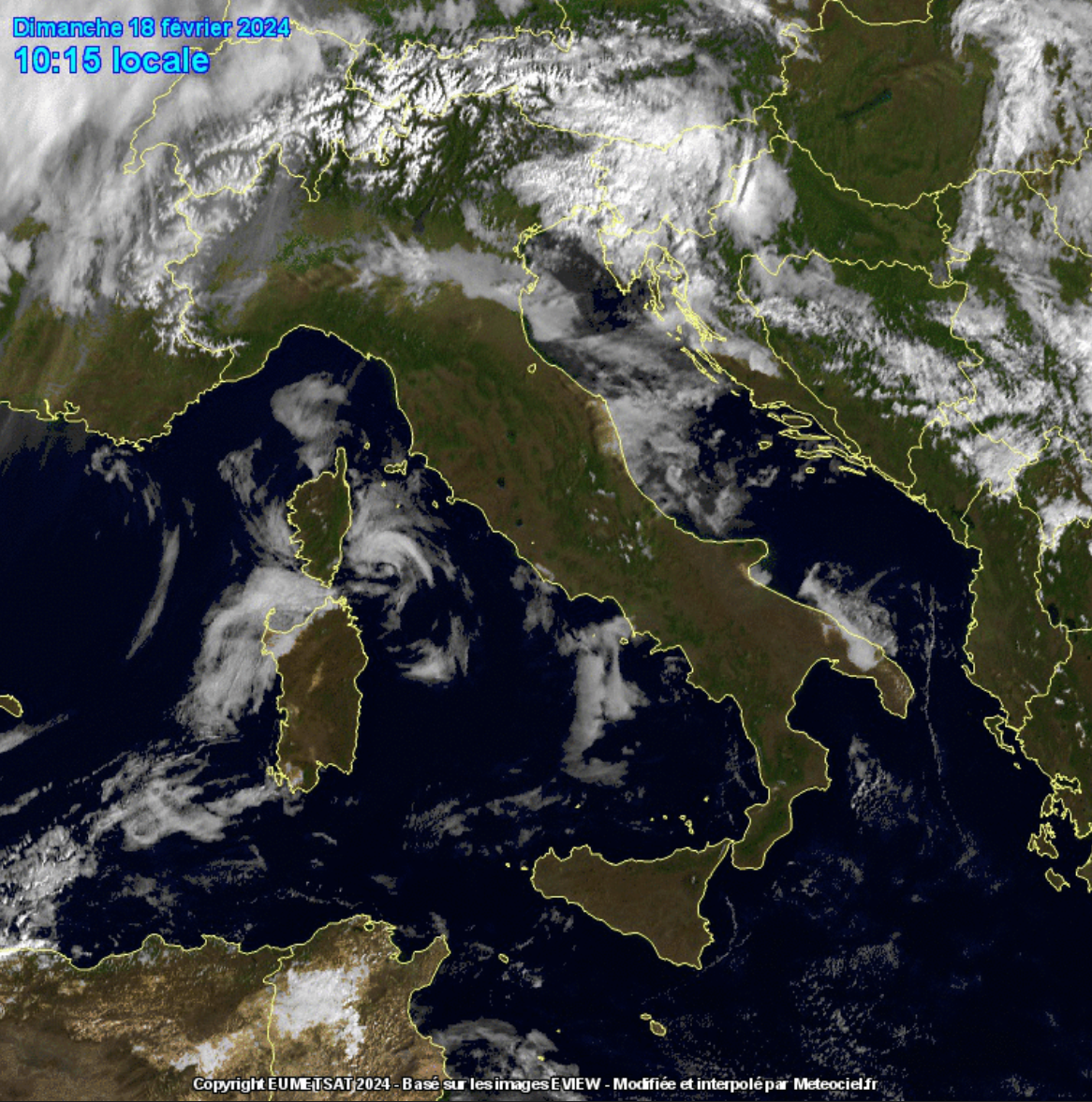 Questa è l’immagine satellitare scattata pochi minuti fa, dove si nota che quasi tutta la pianura padana è avvolta dalla nebbia: