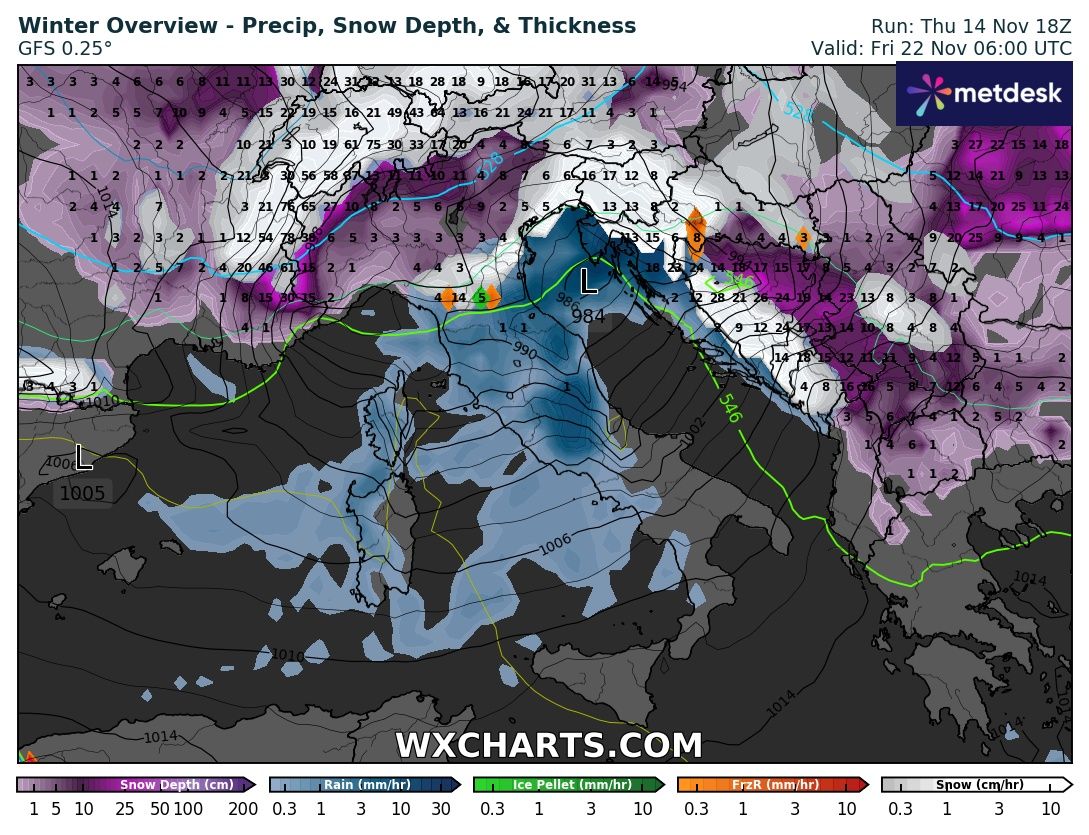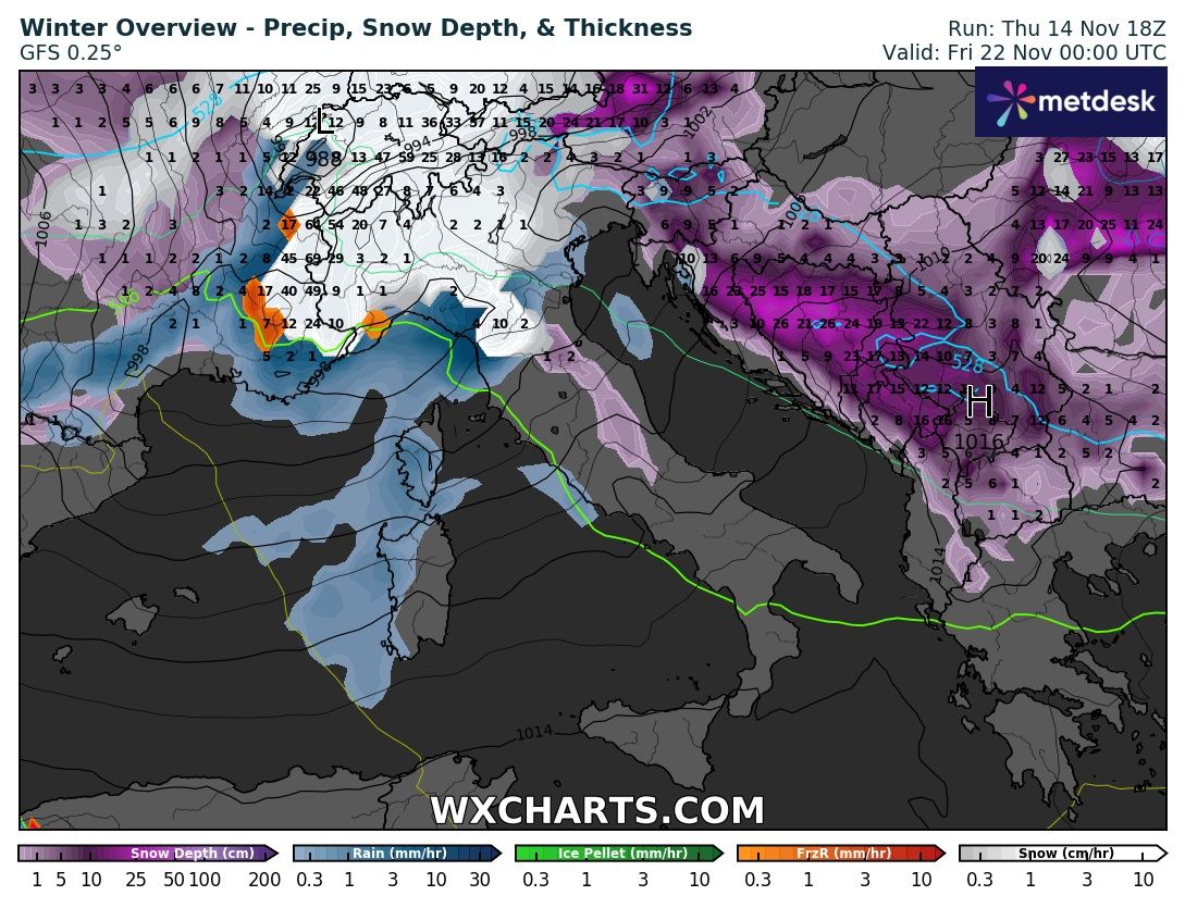 Ormai il modello Americano, sembra abbastanza sicuro riguardo alle nevicate in pianura tra il 21 ed il 22 Novembre 2024.