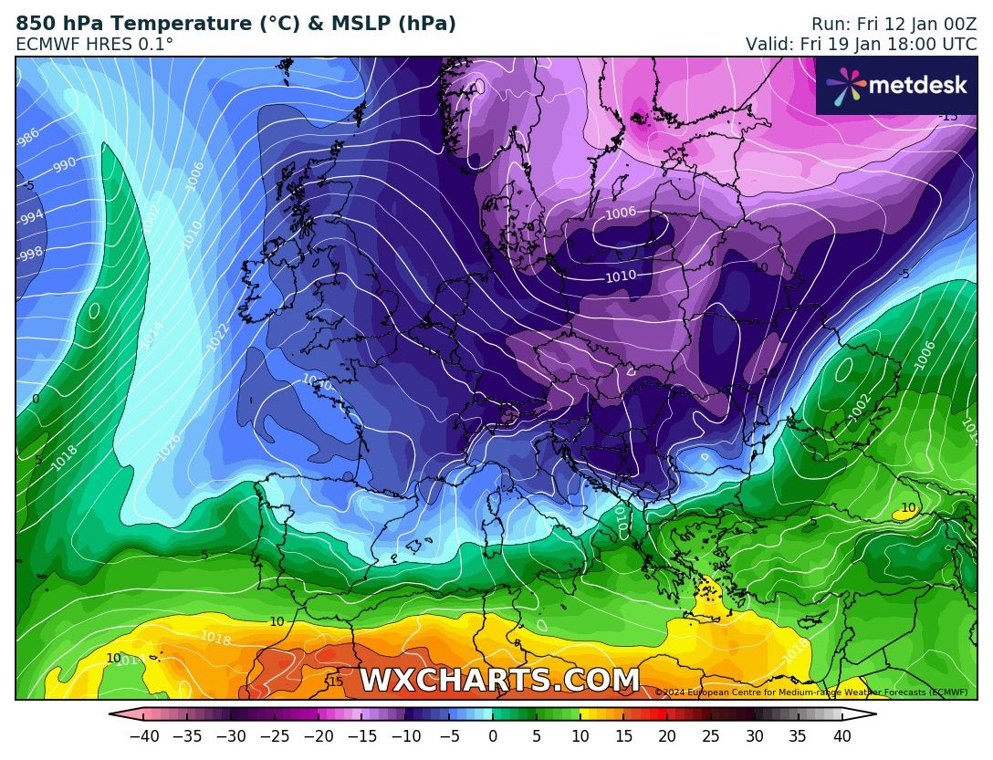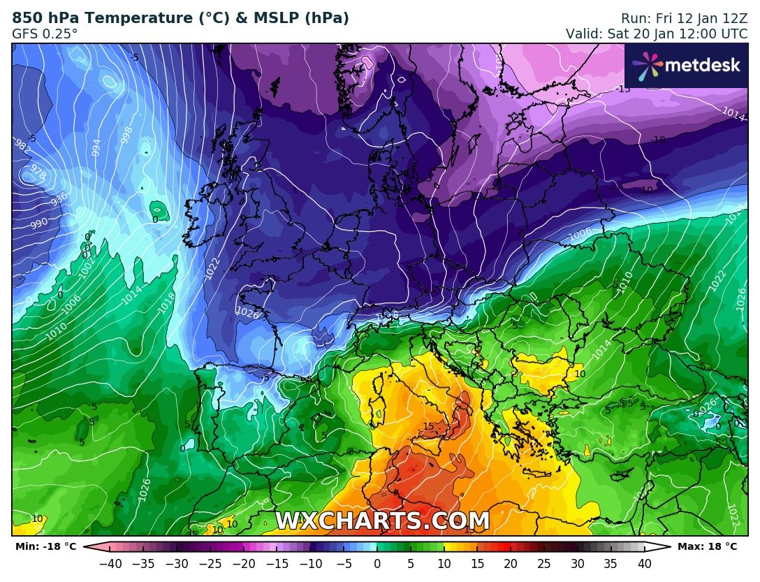 Infatti già da Venerdì 19 Gennaio sempre una discesa di aria più fredda avrà il compito di far arretrare l’Anticiclone verso l’Africa, riportare temperature più fredde nella media del periodo e favorire l’ingresso di perturbazioni sull’Italia: