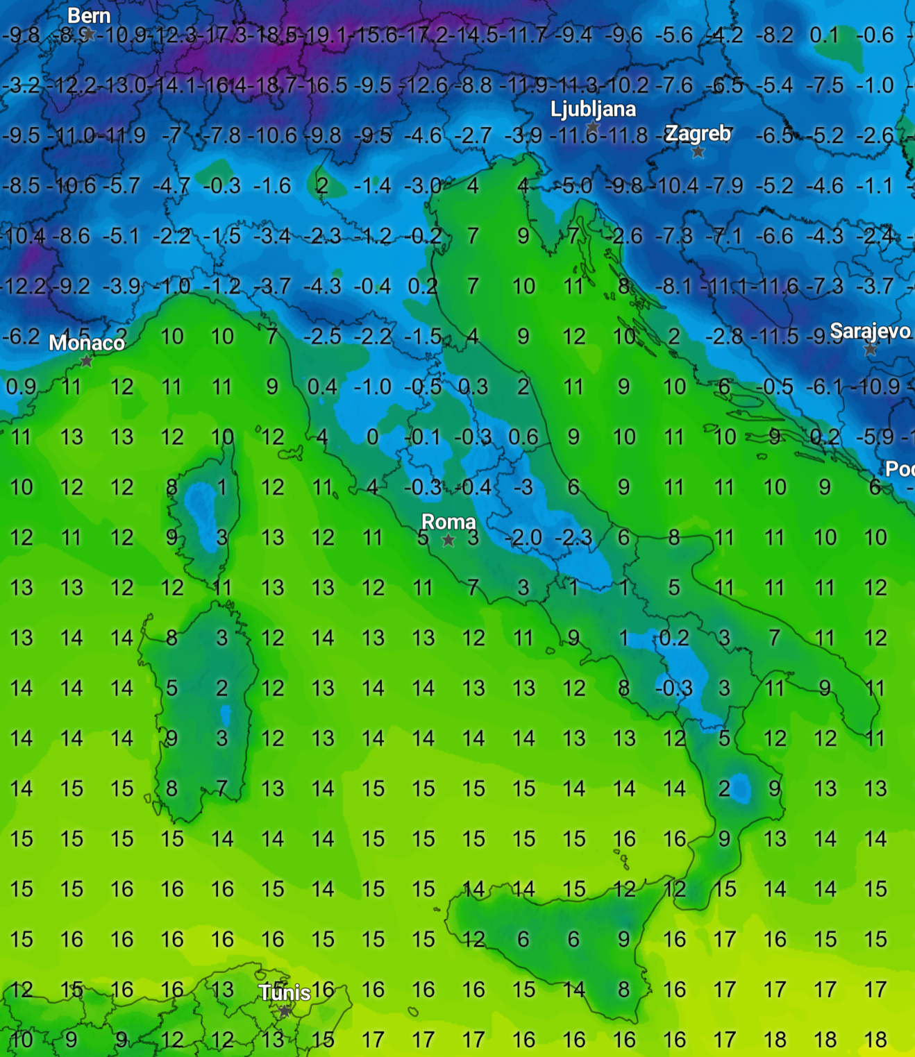 Nei giorni successivi arriverà altra aria Artica che farà diminuire ulteriormente le temperature al Nord, specie sulla Pianura Padana e guadagnerà terreno verso il Centro Sud e le Isole maggiori, anche se leggermente più attenuata.