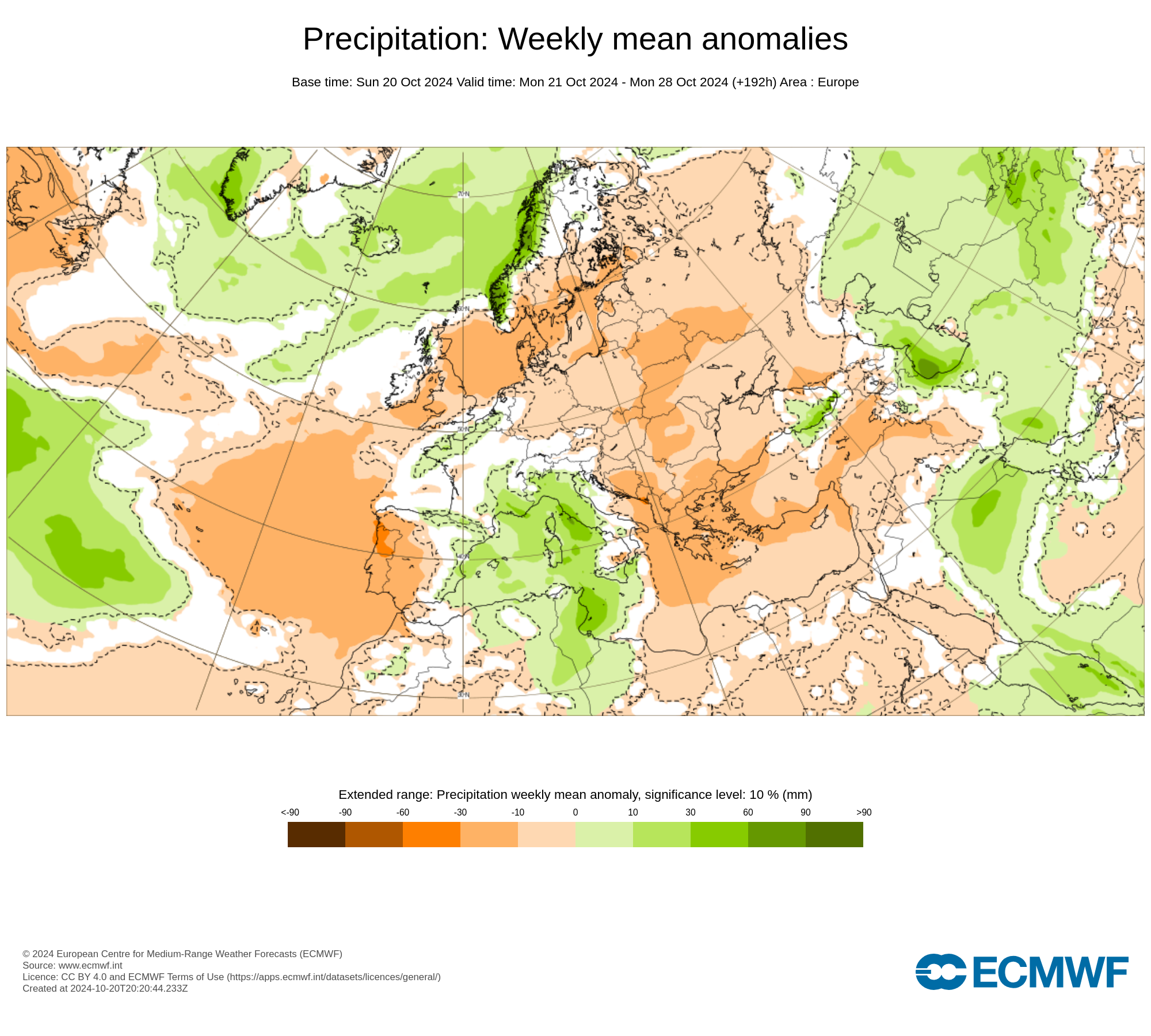 Il modello Europeo conferma nelle elaborazioni a 10 giorni ad alta risoluzione, ma anche nelle elaborazioni mensili, che entro la fine del mese avremo precipitazioni superiori alla media e temperature al di sotto della media, a causa dell’arrivo di un Ciclone e di aria Artica sull’Italia.