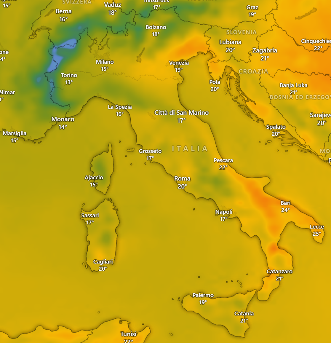 Nell’elaborato le temperature massime previste: