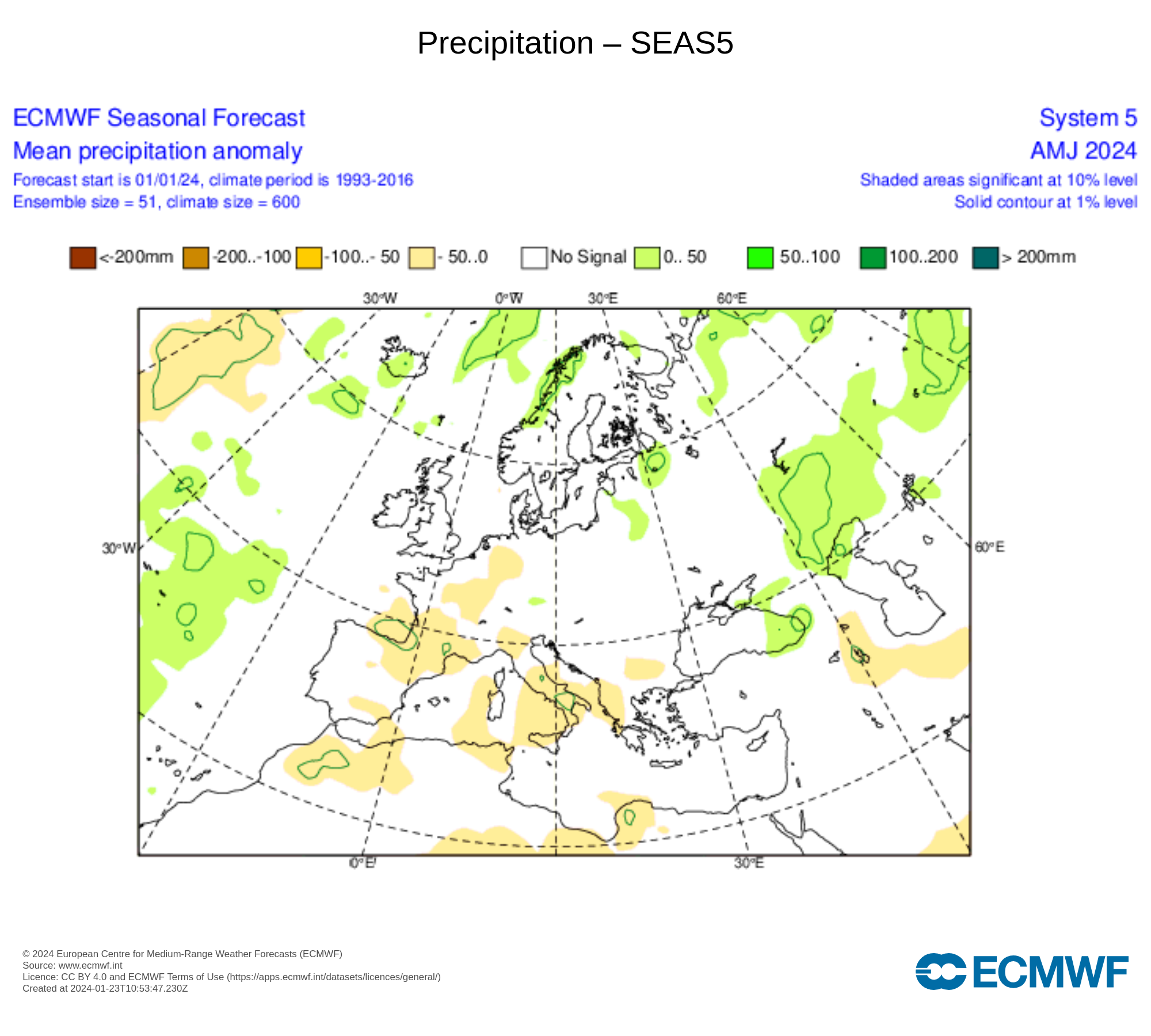 Le previsioni Meteo Stagionali sono elaborate dal prestigioso Centro di Calcolo Europeo ECMWF e calcolano le anomalie delle precipitazioni e delle temperature, per i prossimi quattro mesi, rispetto al periodo di riferimento che comprende gli anni dal 1993 al 2016.