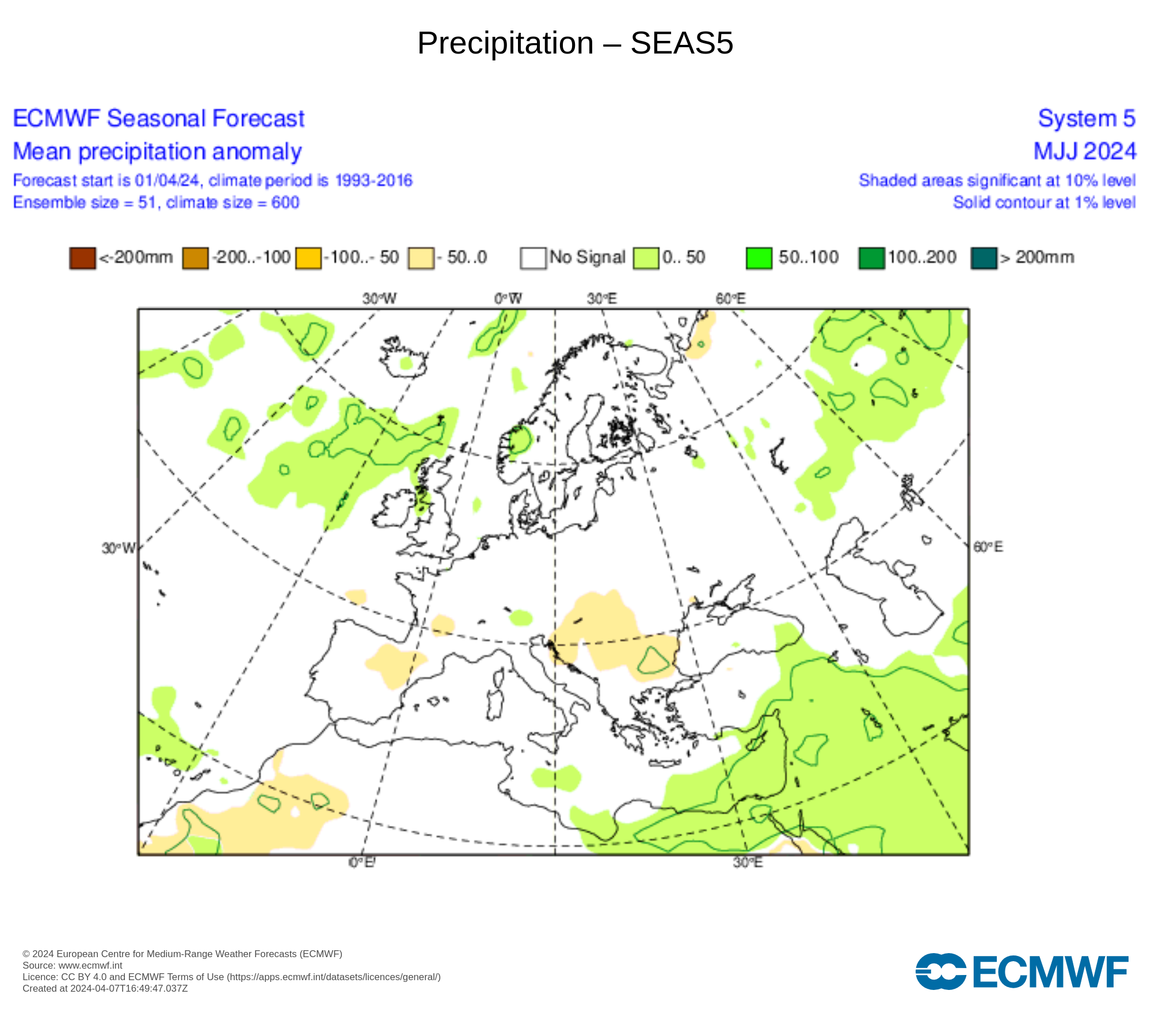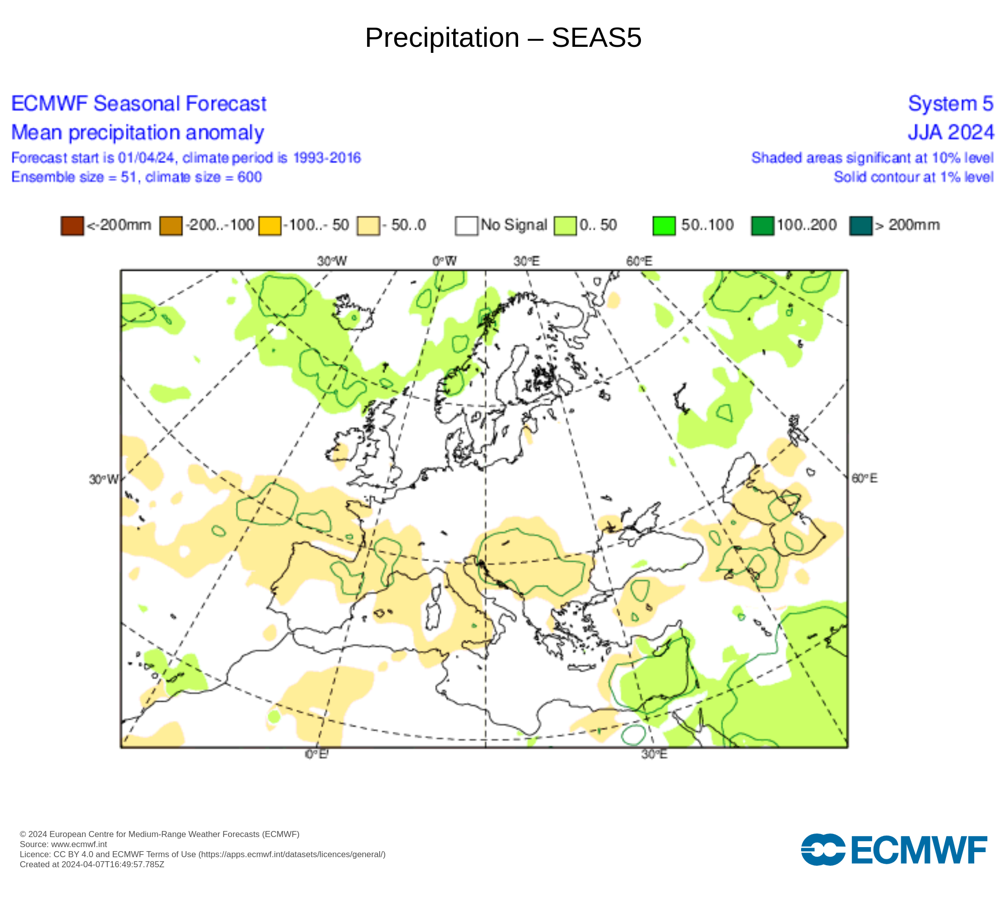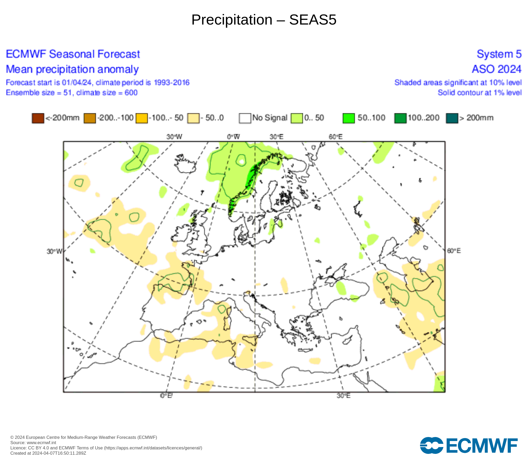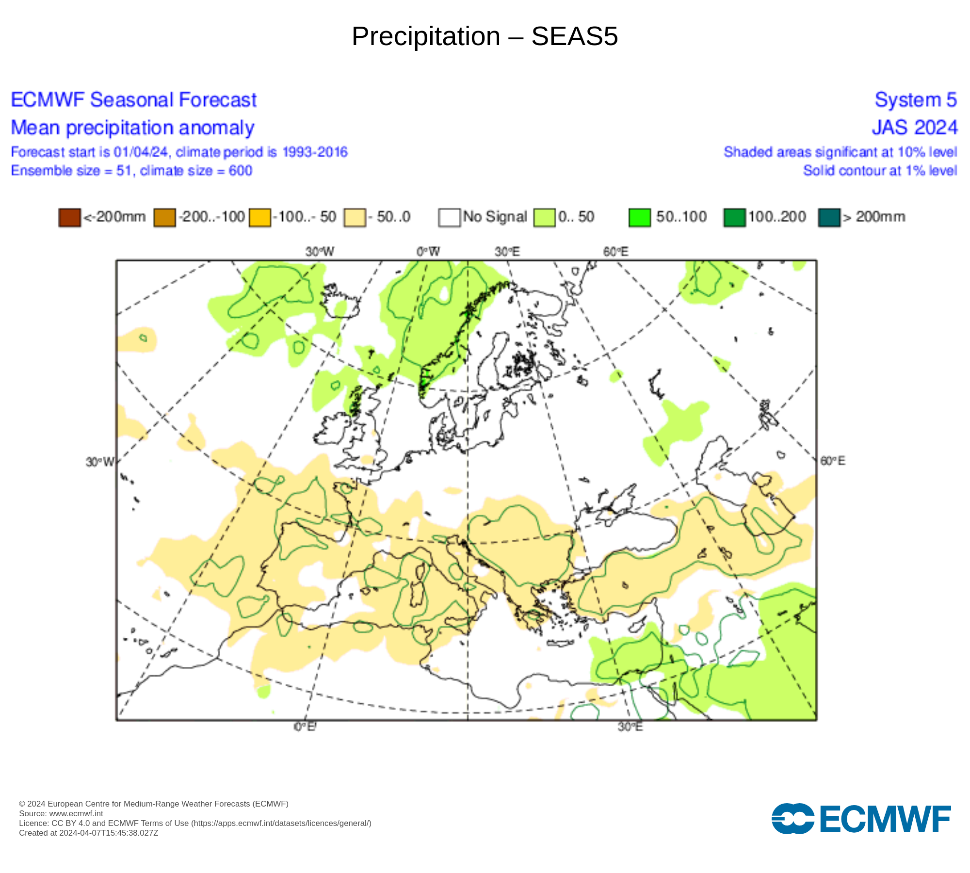 Per quanto riguarda le precipitazioni il range varia da quelle oltre la media, da zero fino a 200 litri di acqua per metro quadro e viceversa sotto la media da zero a 200 litri di acqua per metro quadro.